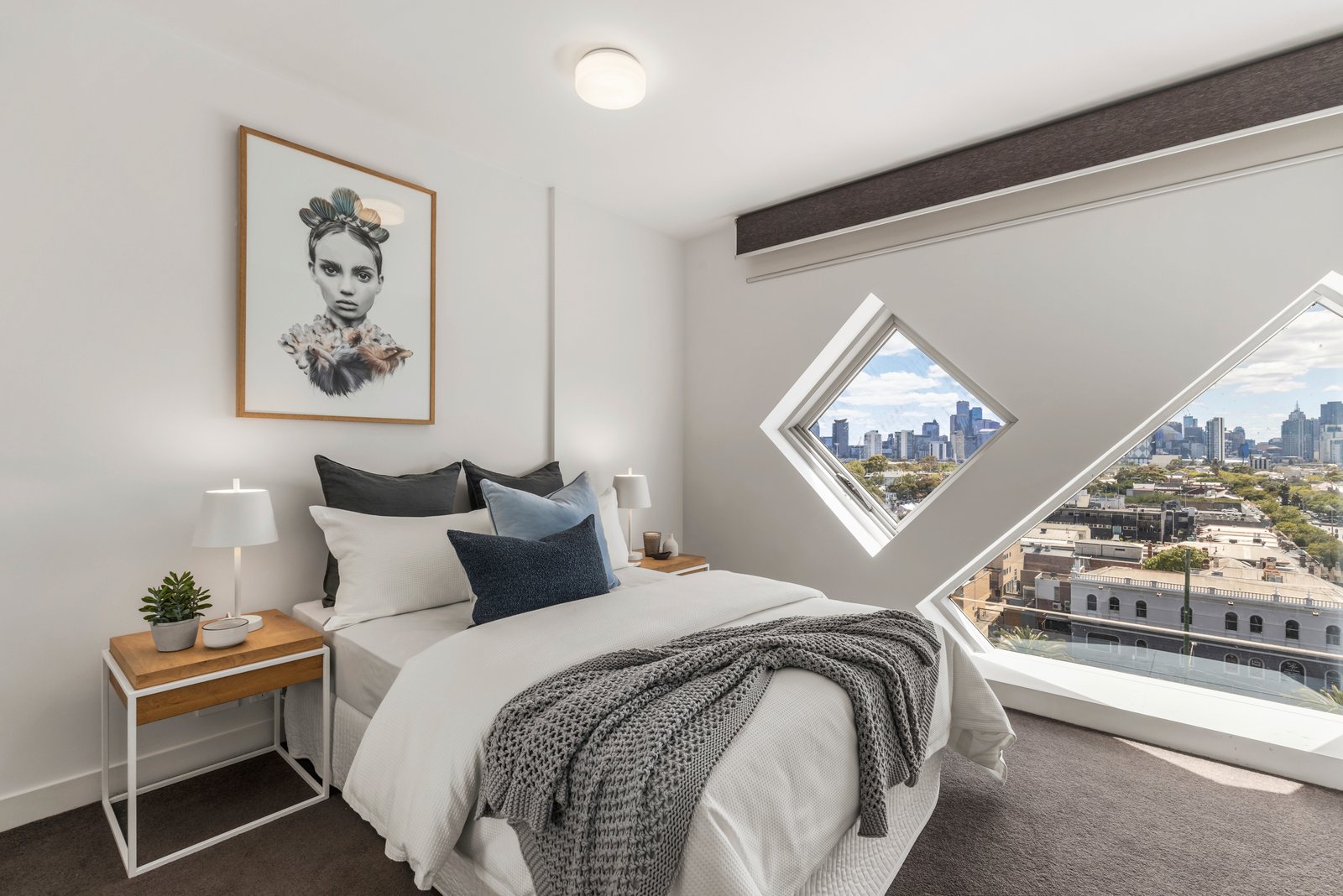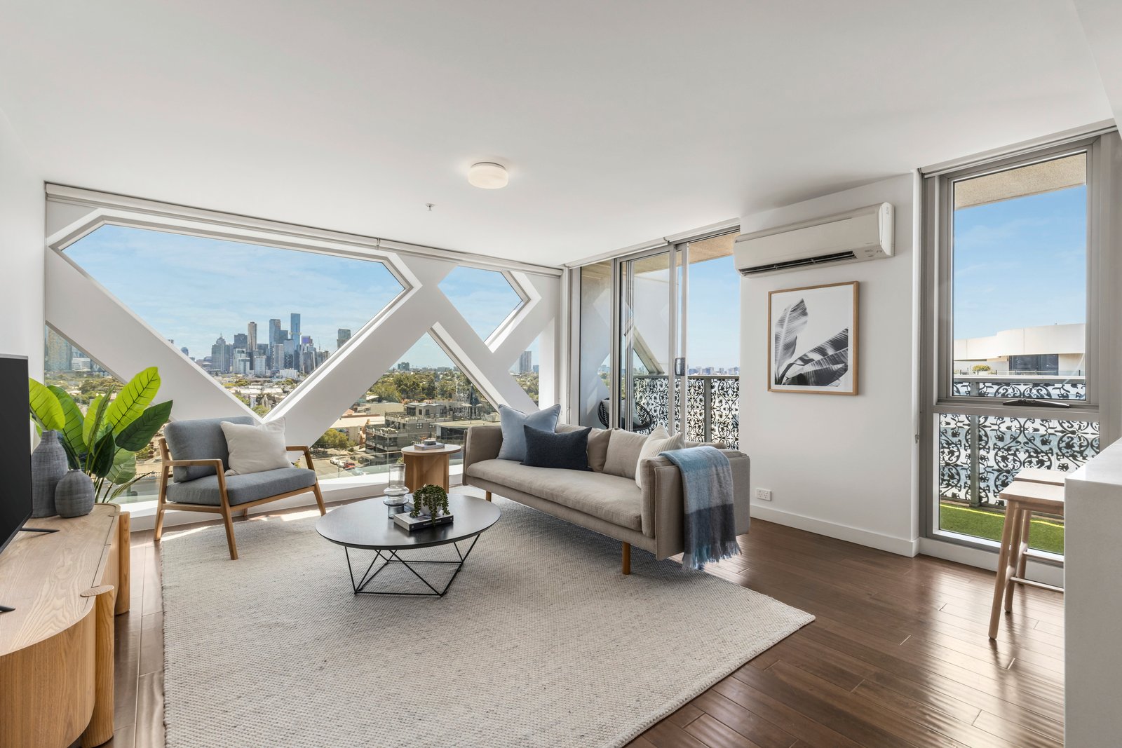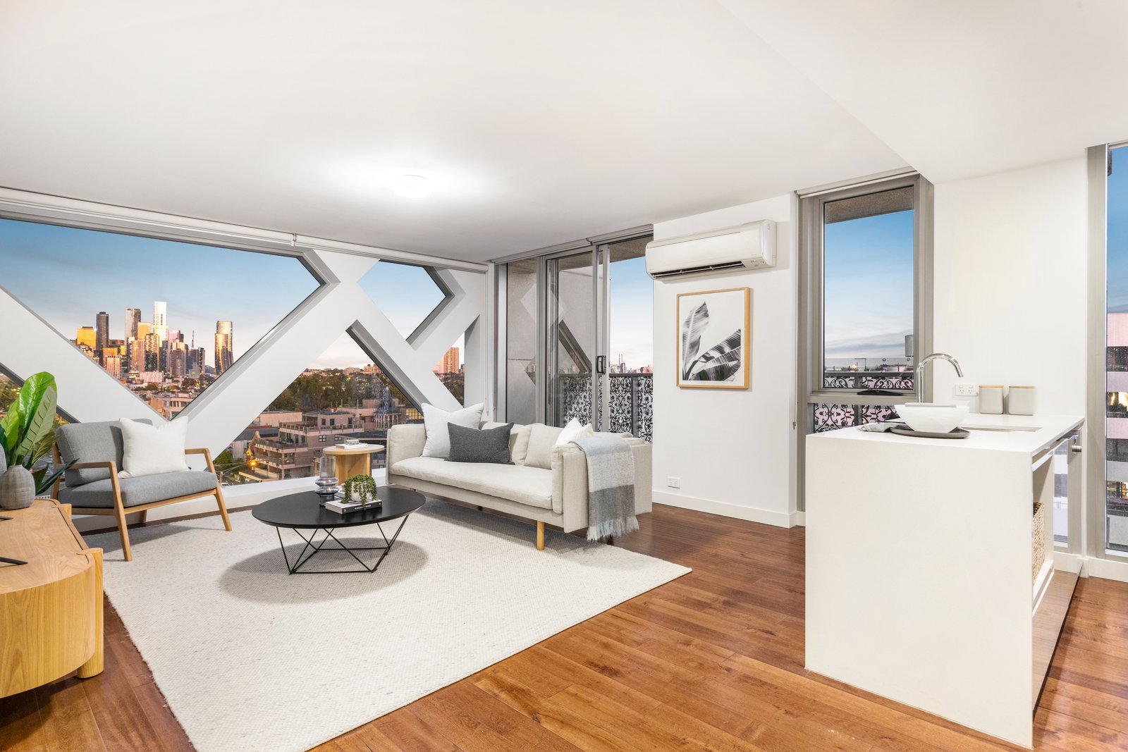A comprehensive suite of Miele appliances ensure that gourmet cooks and proud entertainers will relish the privilege of this striking, stone-topped kitchen and open-plan dining / living area, where a vast island bench provides a wonderful place to gather. With engineered wooden flooring throughout, the space feels effortlessly glamourous. The sanctuary of the master bedroom, complete with substantial WIR with clever storage is serviced by a fully-tiled ensuite, whilst the second bedroom enjoys views across to the CBD and is appointed with a generous BIR and access to the central bathroom tucked away behind the euro style laundry.