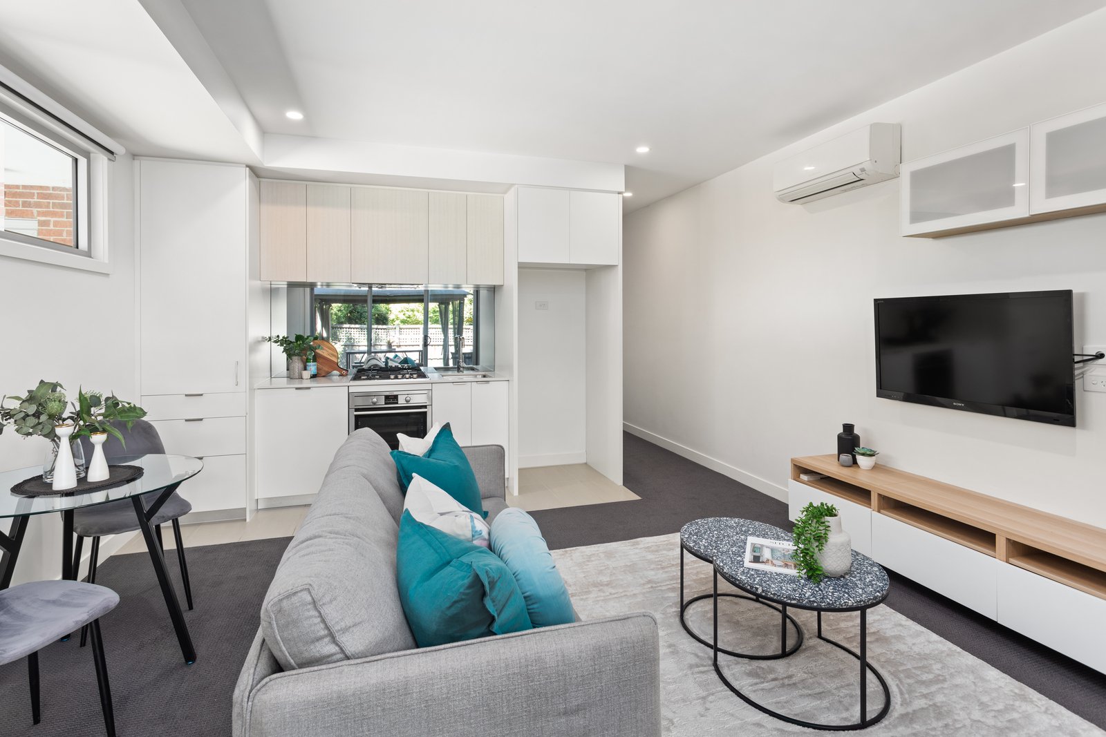 Enjoy an indulgent lifestyle of low-maintenance ease in this chic ground floor apartment, where high-end finishes, northern light and designer brilliance provides luxurious lock-up and leave ease surrounded by amenities. An open-plan living/dining environment incorporates a sleek stone kitchen, before unfolding to a huge private terrace – ideal for seamless indoor-outdoor entertaining. 2 robed bedrooms share a luxe bathroom, while split system heating/AC, basement car space and storage cage add further appeal to first home buyers, downsizers and savvy investors. A prized location, an easy walk of Jordanville train station, Jordan Reserve, local shops and sporting facilities, and close to Chadstone Shopping Centre and M1 Freeway.