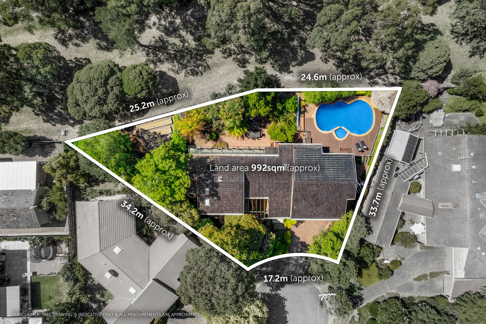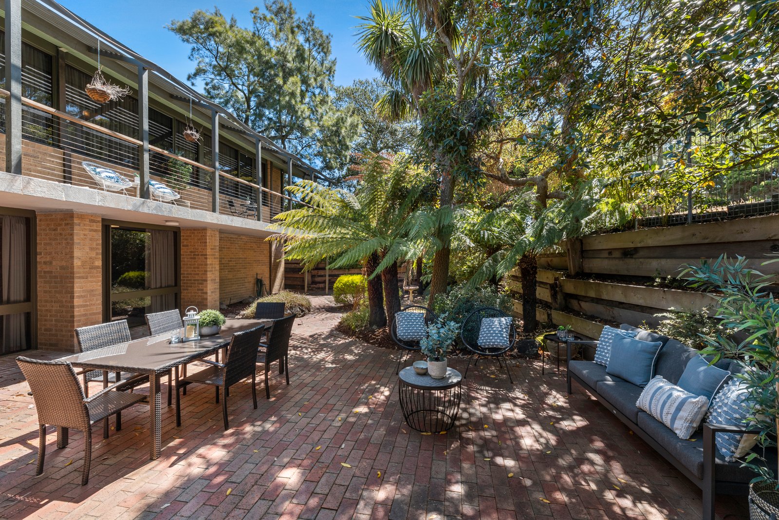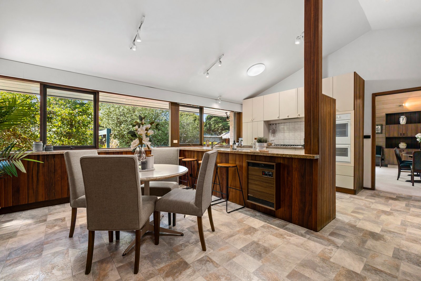In a tranquil world of its own in a serene parkland setting, this abundantly accommodating 5 bedroom, 3 bathroom one-owner residence and expansive surrounds (992sqm approx) offers peace, privacy and plenty of space for everyone to enjoy. Perfectly laid out to cater for all ages and stages of family life, from children to adults. Your very own lifestyle escape full of retro style and garden outlooks, this home is characterised by its soaring raked ceilings, timber panelling and solid brick construction. Architecturally designed with multiple living zones, split-level interiors provide formal lounge and dining rooms, updated Granite kitchen/meals area, huge rumpus room with kitchenette and home office. Enjoy the resort-like exterior, with a private terrace overlooking the in-ground swimming pool/spa and cabana, paved entertaining courtyard and gated access to Toirram Reserve – all immersed in beautiful established native gardens. Enjoy as is or add contemporary glamour to immaculate interiors, complete with in-floor zoned heating, dual-zoned AC, ducted vacuum, irrigation system, wine cellar, storage room, huge laundry and triple garage with workshop and internal access. This owner-built home is located in a quiet court setting providing a safe environment for children, just minutes to Mount Waverley Village shops and train station, close to schools including Mount Waverley Primary School, M1 Freeway and Mayfield Park. Zoned for MWSC.