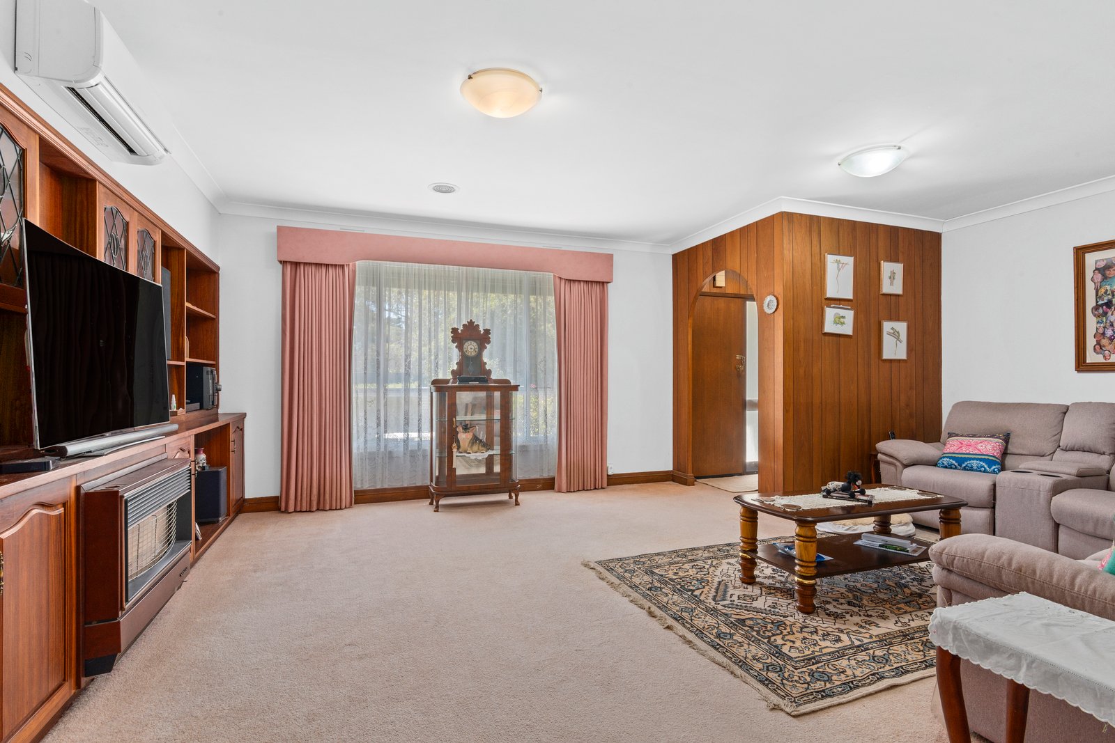 Set behind established gardens, the neatly maintained home presents a welcoming introduction on arrival. Stepping inside, the first of two living areas offers a cosy room to relax or entertain with a picturesque garden outlook. The adjoining kitchen and dining area forms the heart of the home, featuring timber cabinetry, 600mm stainless steel oven and cooktop, dishwasher, and excellent storage provisions. Further on, a huge second living room provides an alternative space to retreat away from the main traffic of the home, send the kids to play or watch a movie, with glass sliders opening up to the backyard.