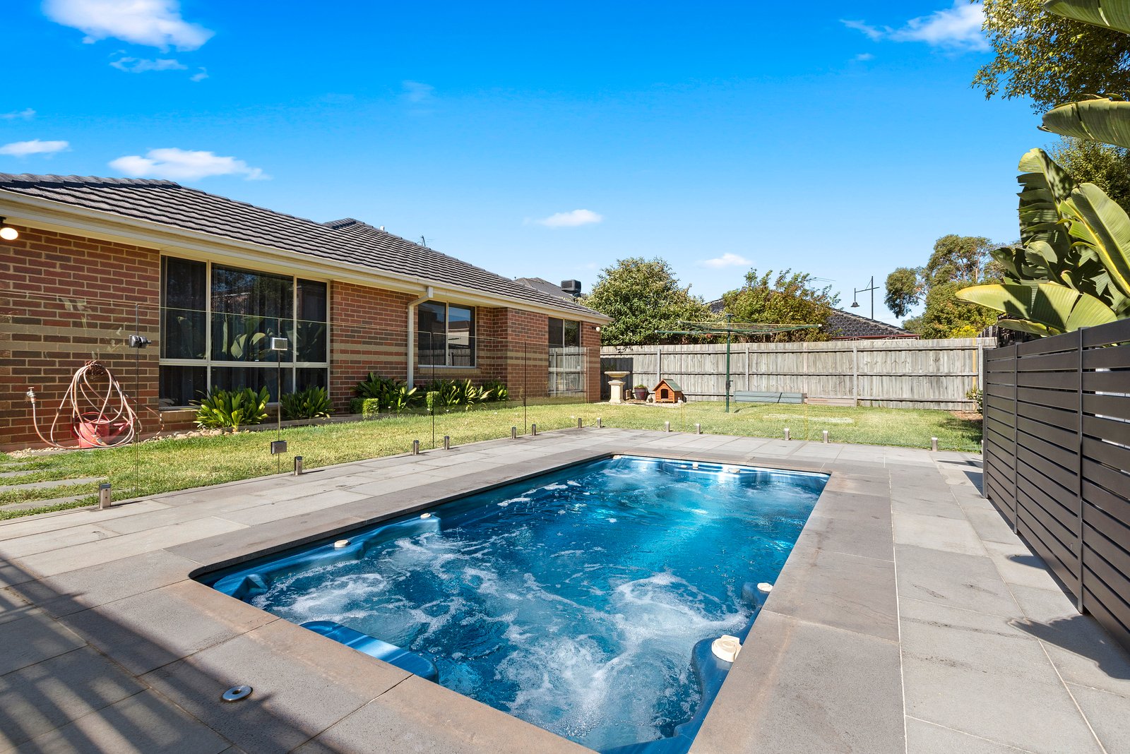 Entertainers will love the home’s alfresco patio and gas heated swim spa – there is also plenty of grass for kids and pets to play. Also offered are ducted heating, refrigerated cooling, security alarm, 16 solar panels, surround sound, water tank and double auto garage. Tinted windows and comprehensive insulation are standout inclusions – the home also has a 5-star acoustic rating.