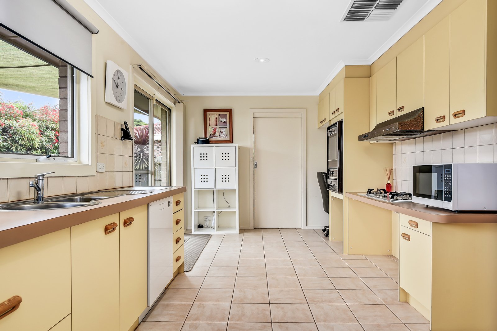 All-original finishes are well maintained in the kitchen which looks out across the yard and enjoys a direct servery window to the deck. Buyers will love the internal glass French doors that create flow throughout, and the abundance of storage available, bolstered by a walk-in pantry. 900mm gas burner cooktop and dishwasher.