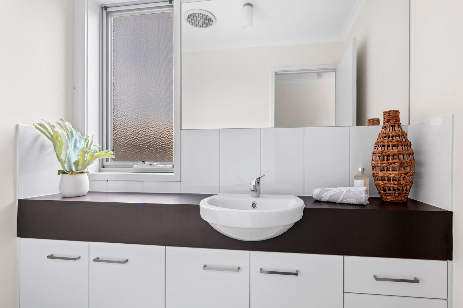 Comprising two upstairs bedrooms, the master features walk-in robes and direct access to a private balcony. The second bedroom also includes walk-in robes, and both rooms have direct access to a central bathroom with spacious shower, modern vanity and quality fittings.