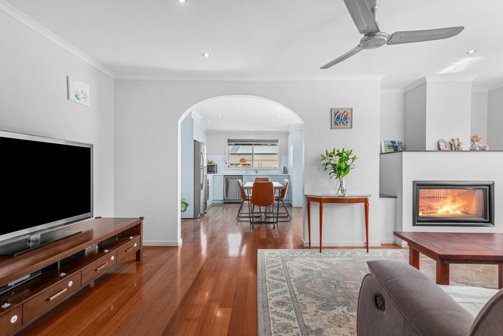 Neatly presented, the classic double-fronted brick veneer is set behind well-maintained gardens. Inside, a light neutral palette and polished timber floorboards create a warm and welcoming ambience throughout. The entry takes you through to a spacious north facing living area abundant in natural light, with a gas log fire creating a cosy atmosphere within. The floorplan flows effortlessly through to the adjoining kitchen and meals area, the well-appointed kitchen featuring stone benchtops, stainless steel appliances including 600mm oven and gas cooktop, dishwasher, excellent storage and direct access to the north facing sun deck which offers the perfect space to enjoy your morning coffee!