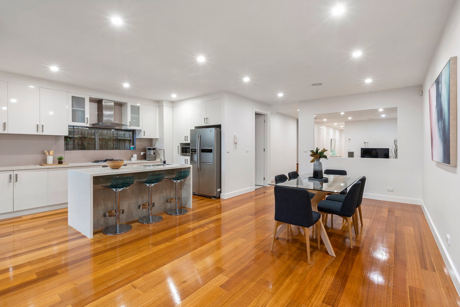Built on a grander scale than most, and enjoying more garden than many, this superb family townhouse is presented in standout condition. Refreshed with new carpet and fresh paint, there are a raft of high-quality highlights such as exposed aggregate paving in the landscaped gardens, plus soaring ceilings and extended height doors through the truly expansive interiors.