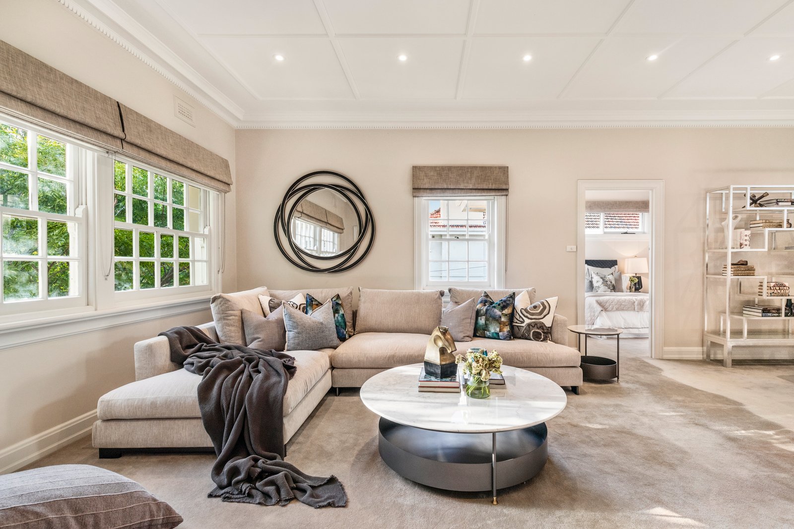 ‘Panamuna’ currently strikes a beautiful balance between grand period living and contemporary family style. Decorative details imbue an air of old-world sophistication, dappled sunlight illuminates expansive interiors and timeless arches frame lush vistas from every room. Water views are also captured from the upper level main bedroom and luxury ensuite.
