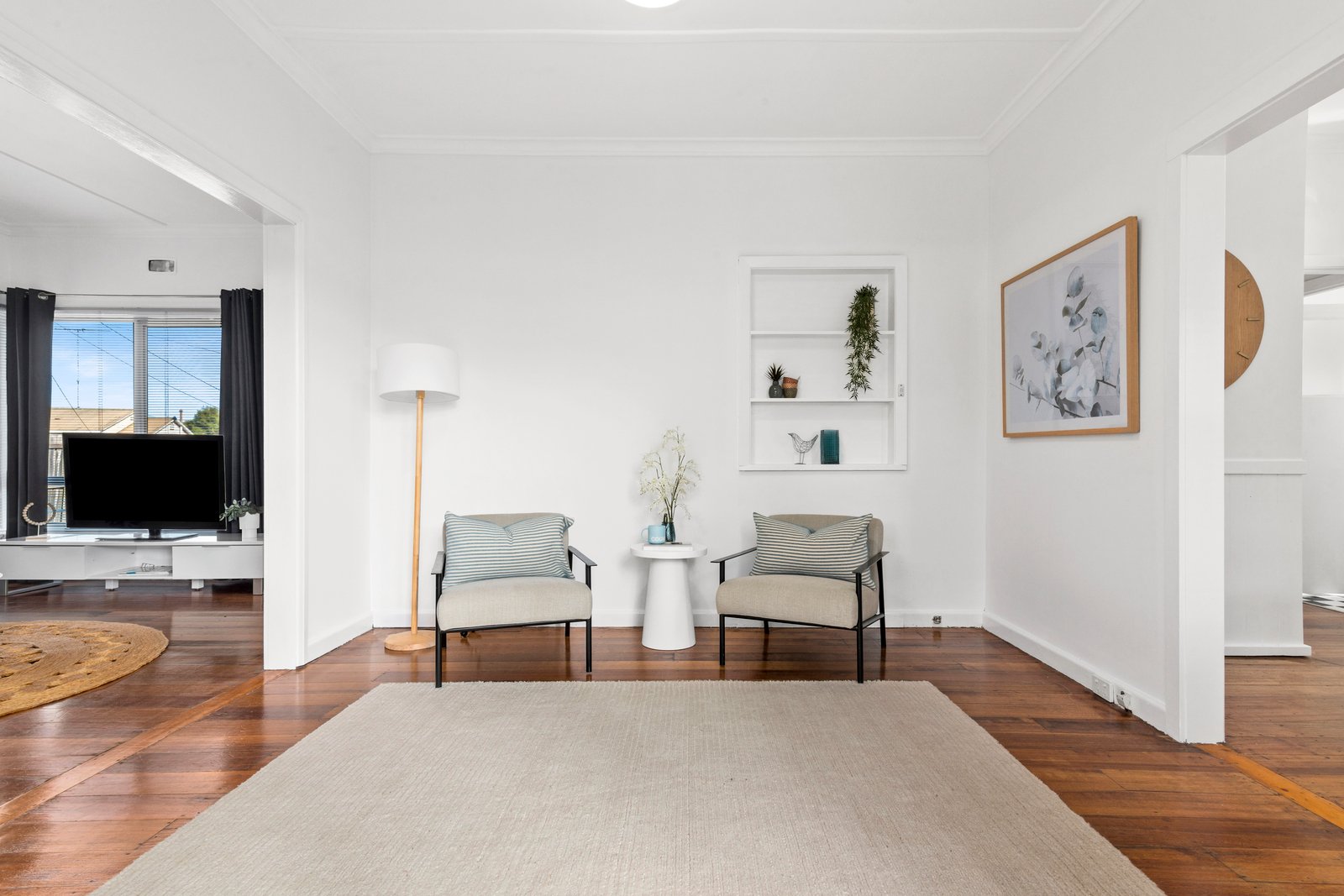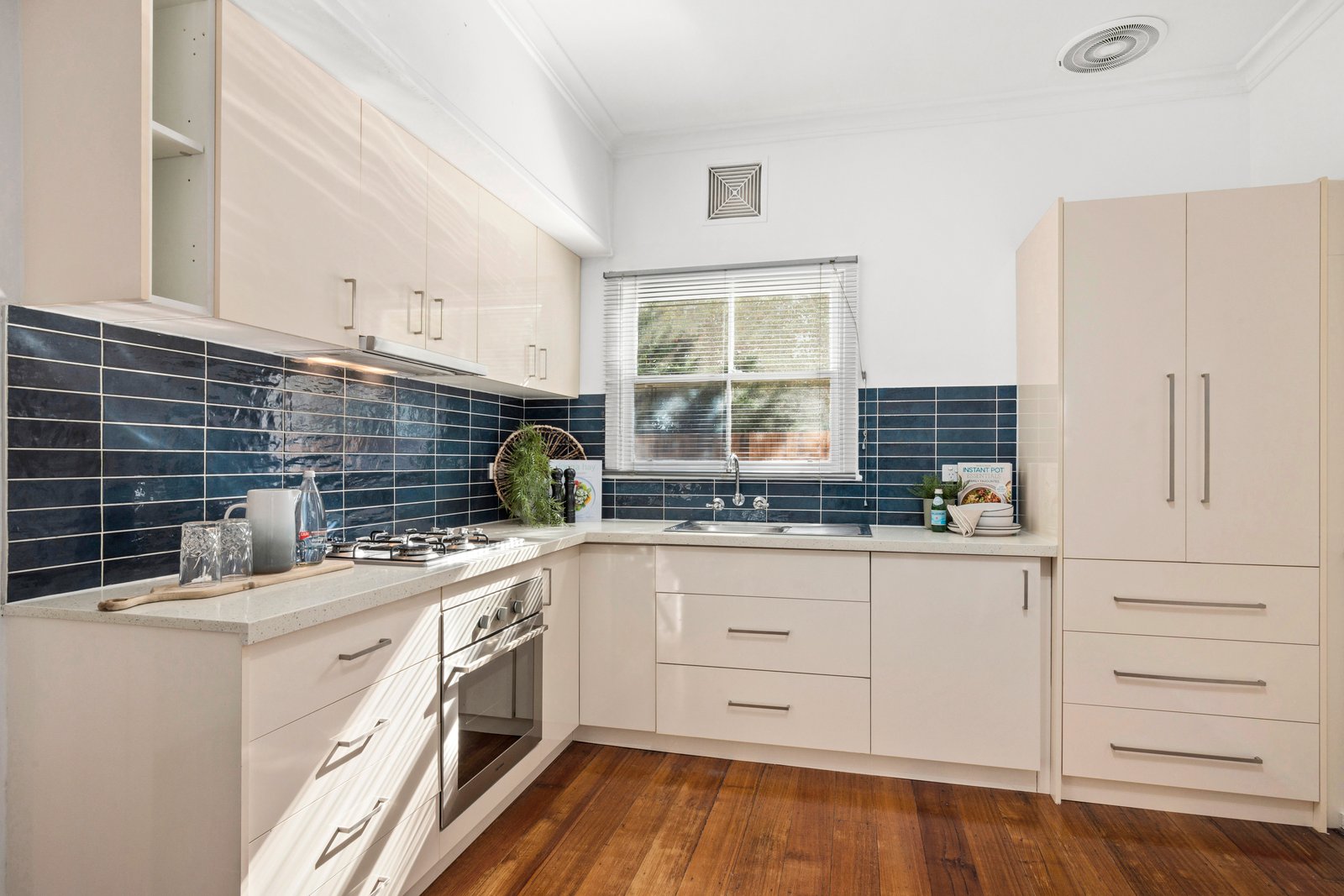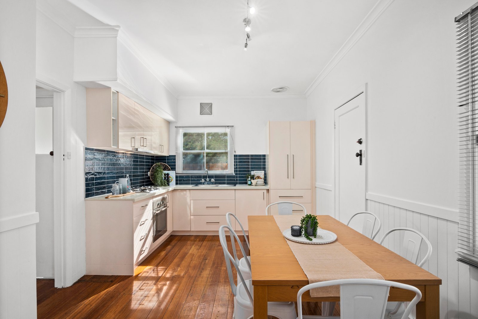 Neatly presented gardens and a classic weatherboard façade form a warm welcome on arrival. Inside, crisp white interiors and polished timber floorboards creating an inviting ambience throughout. The stylish living room enjoys a north facing aspect for ample natural light, and split system heating and cooling caters for your modern comforts. The well flowing floorplan moves effortlessly through to the adjoining dining and kitchen, creating a fantastic layout for everyday living and easy entertaining. Elegantly updated, the kitchen features modern cabinetry, stone benchtops, stainless steel appliances, and stunning feature-tile splashback.
