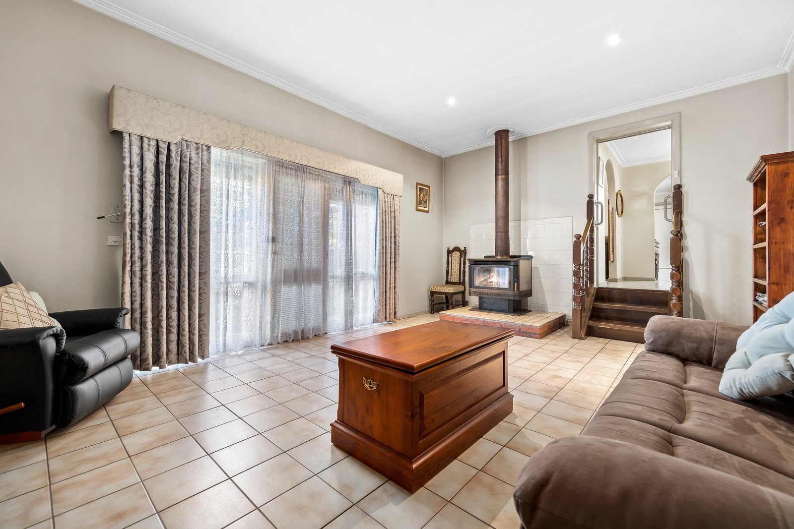 Beyond the gated entry, classic brick exterior and fenced porch, you are welcomed by a spacious front living zone flushed with natural light. The area flows through to a timber kitchen with a gas stovetop, excellent storage space and a casual meals area. From here, an additional entertainment area is available, sundrenched with natural light and heated by a natural, wood-burning fireplace.