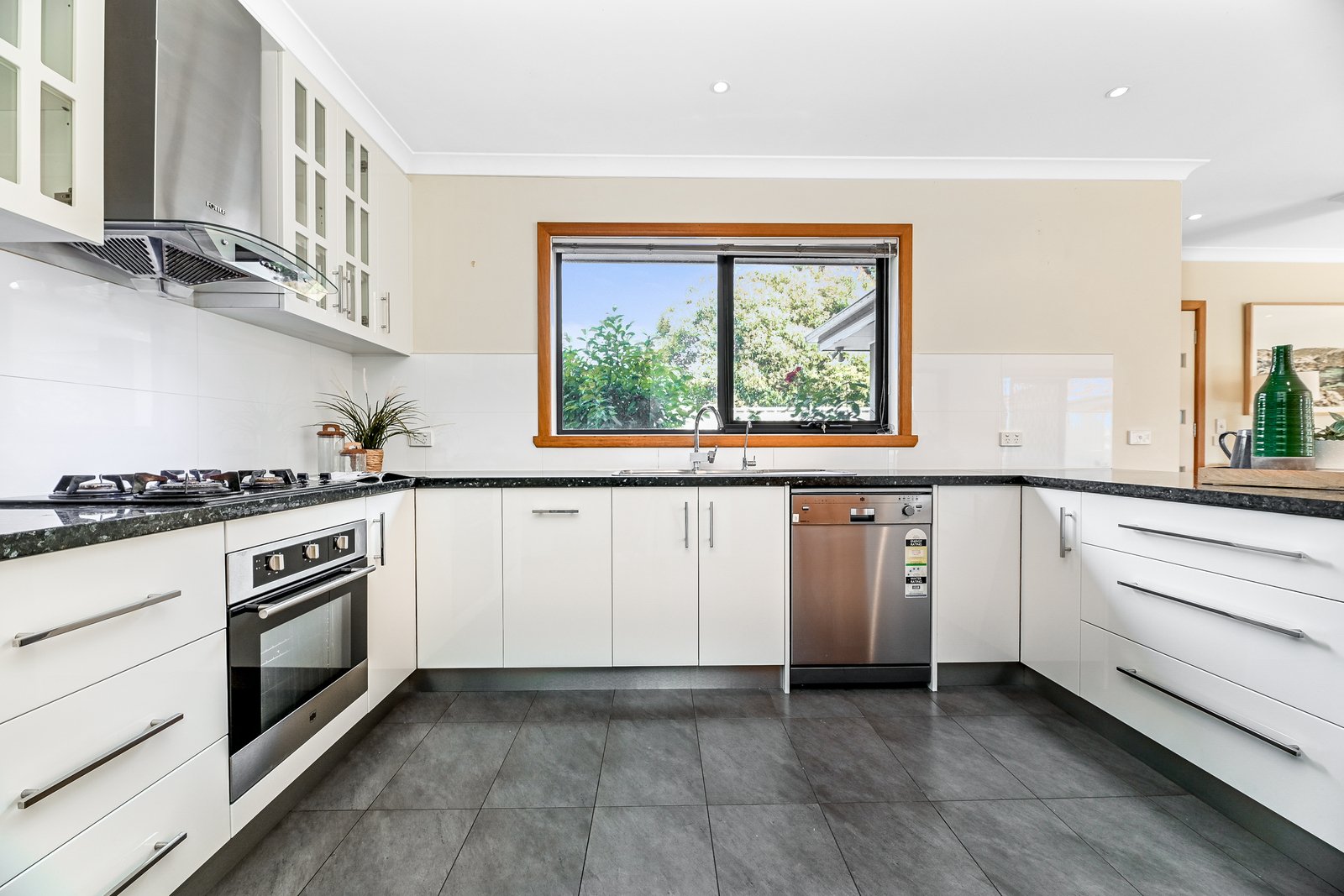 The kitchen is open and opulent, vaunting luxurious 40mm stone bench tops and Hamptons-style display cabinets. An elegant gooseneck mixer and water filtration tap are welcome additions, complemented by an integrated stainless steel dishwasher. A glass gourmet Fotile rangehood adorns the 900mm gas cooktop and electric oven.