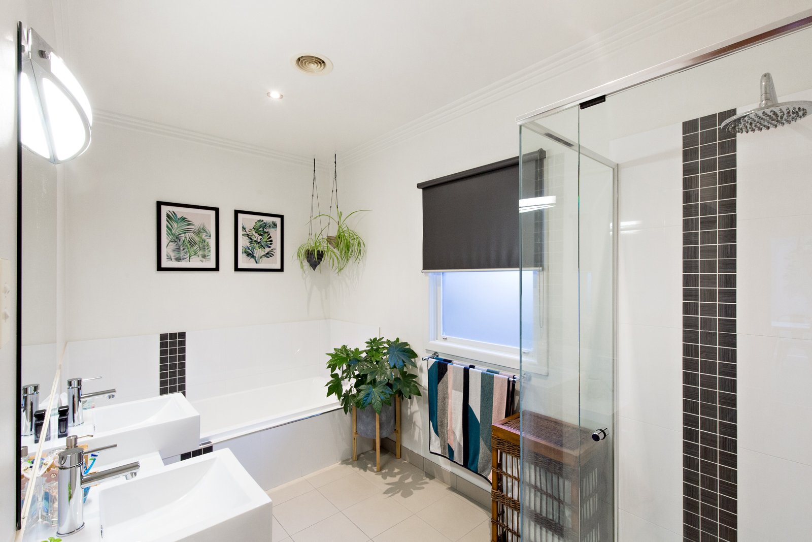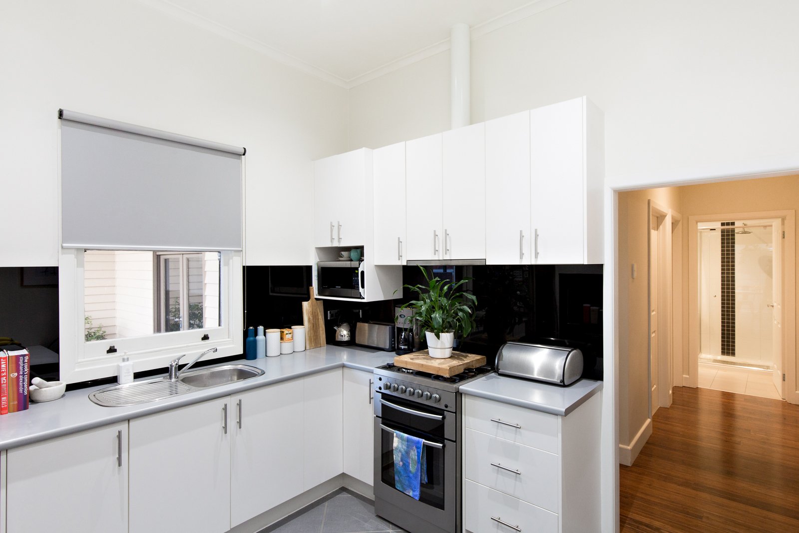 Further down the wide hallway you are greeted with the well-equipped kitchen on your left and then large bathroom with shower, bath and double vanity as well as separate toilet and laundry area to your right.