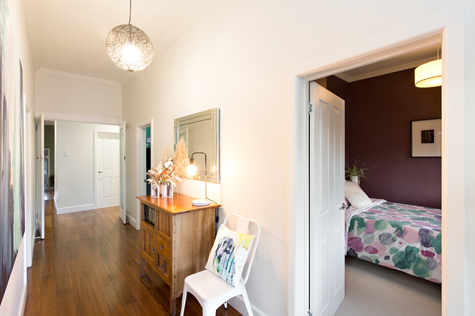 The spacious main living and dining space presents beautifully and reflects the high ceilings of the original part of the home. The master bedroom runs off the back and has larger built in robes for extra storage.