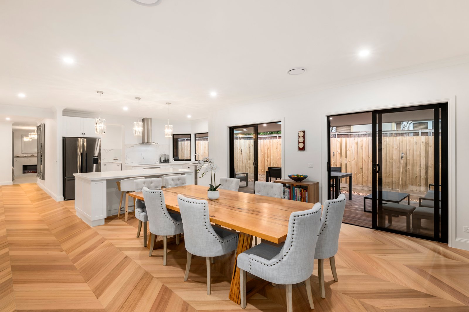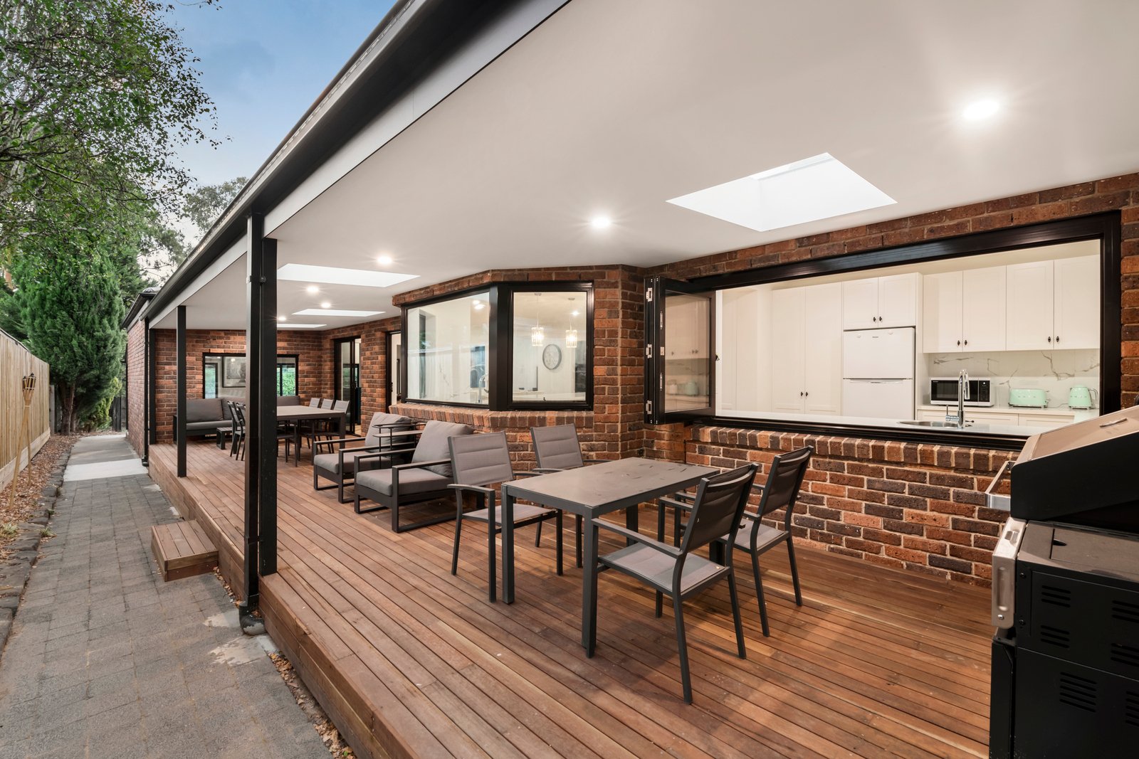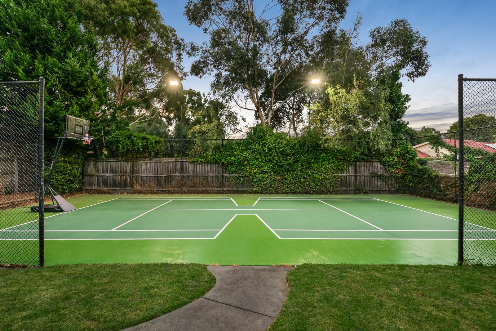 Spanning deep on a 1,297m² block, lies a single level double brick 64sq entertainer presented with a hexagon shaped front porch, multiple living spaces, 5 bedrooms, 4 bathrooms, an outdoor deck and half tennis court! Renovated and upscaled, the current layout caters to large families, generational living and guests. Beautifully presented and perfectly placed opposite Jells Park, footsteps from Caulfield Grammar, close to shops and public transport. Underscored by an expansive interior featuring a formal sitting with an electric fireplace, casual living, a media room complete with bar and powder room, spacious dining and a stone bench kitchen featuring a Smeg oven, induction cooktop and dishwasher, framed by a huge island bench with an integrated wine fridge. Most impressive is the butler’s pantry with a servery window out to the deck, appointed with a second fridge space, sink, Smeg oven and Westinghouse dishwasher. There are 5 robed bedrooms and 4 fully tiled bathrooms including 2 bedrooms fitted with walk-in robes and ensuites, and a deluxe master with a walk-in robe, makeup station and a glorious ensuite with a freestanding bathtub. Additional highlights include a stone bench laundry, dual air conditioners with phone app, dual hot water systems, skylights, double glazed windows, 2 doorbells with phone apps, CCTV, alarm system, automated gates and a double garage with cellar.Located within walking distance to Jells Park, buses, Jells Park Primary and Caulfield Grammar. Close to Wheelers Hill Secondary College, Wheelers Hill, The Glen and Brandon Park Shopping Centres, boasting easy access to Glen Waverley Station and Eastlink.