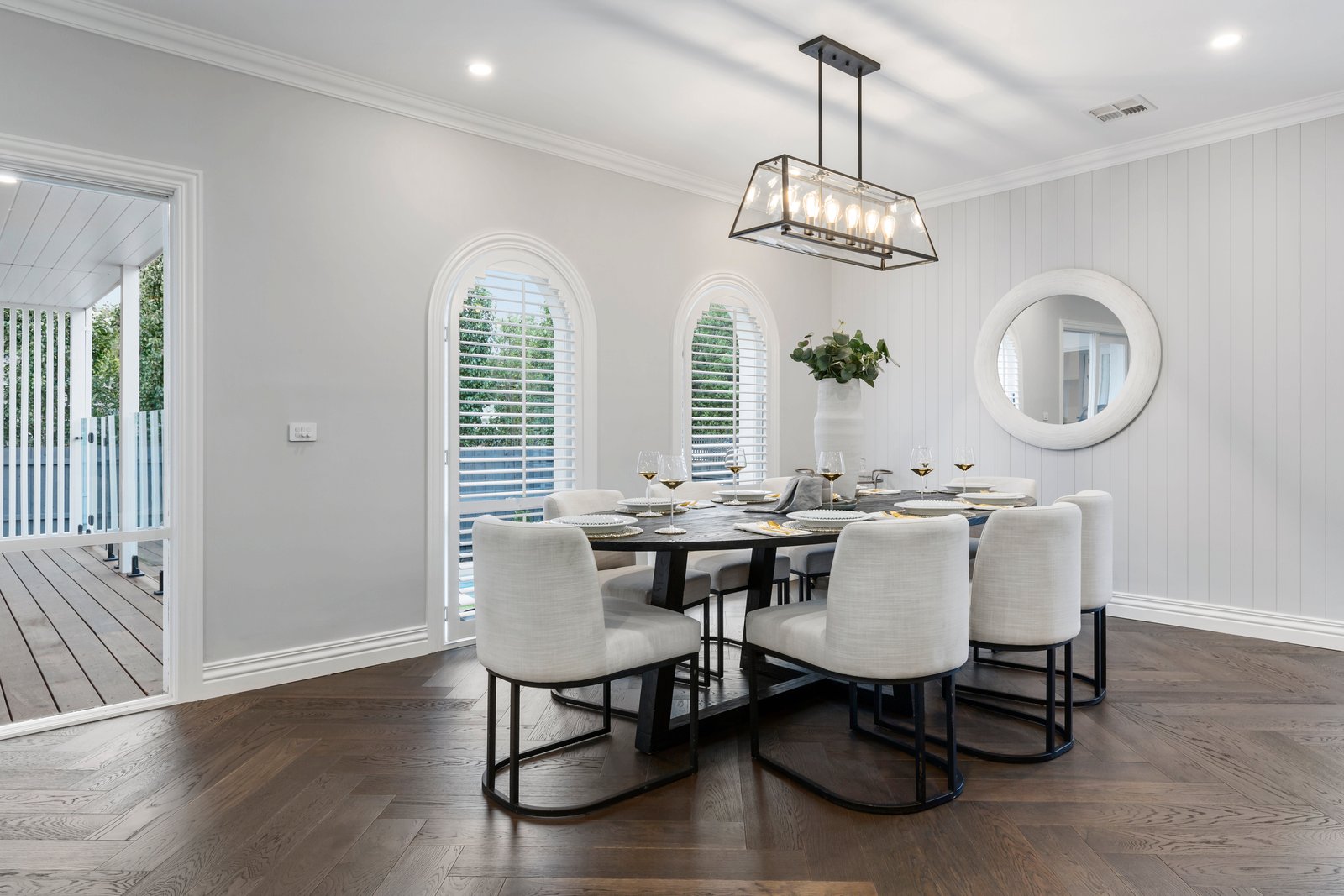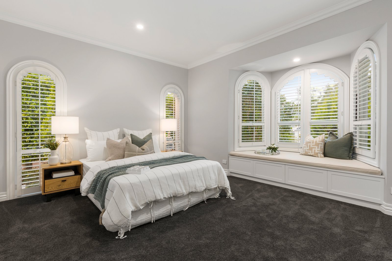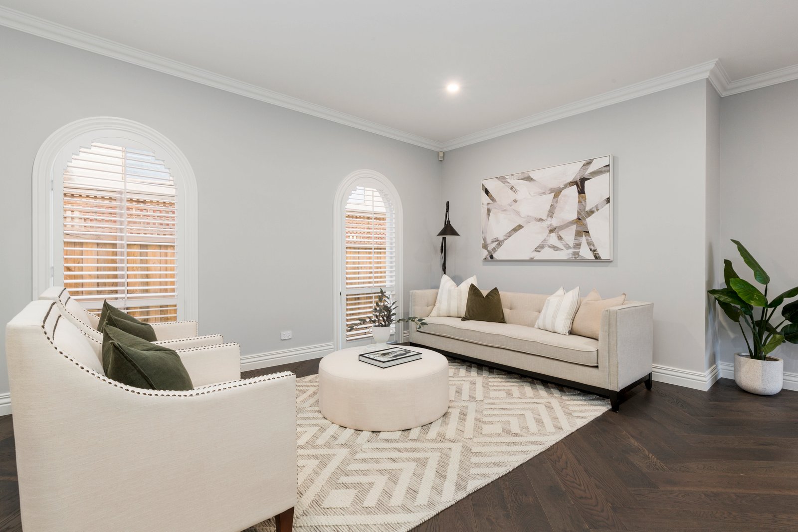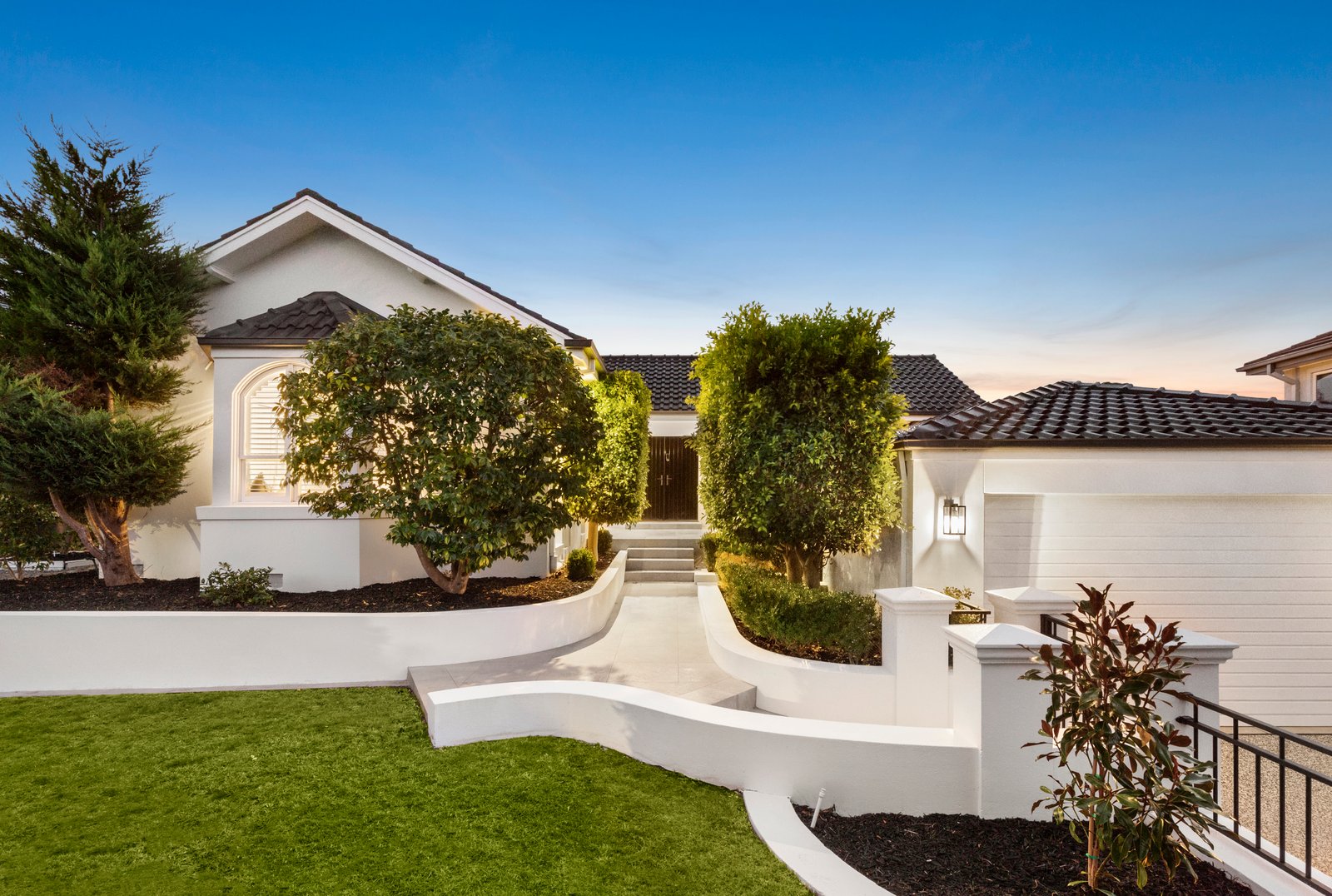 A showcase of classical architectural detail including airy plantation-shutters set beautifully in arched and bay windows, the home’s appointments are never less than future-forward with zoned Daikin climate-control with wifi, ducted vacuum, alarm, keyless entry and auto-irrigation. As beautifully detailed outside as in, with a bench-seat bordered lower deck for cozy evening gatherings around the fire pit and a streamlined solar-heated family pool (with beach area and 12m lap section) in the sun-drenched northerly rear, as well as a formal orchard garden to the side and a family-friendly lawned front and rear yard. There’s even an abundance of parking with a deep and wide exposed aggregate drive plus a three car auto-garage with workshop or sizeable cellar!