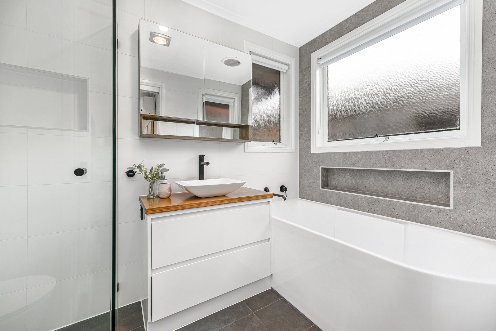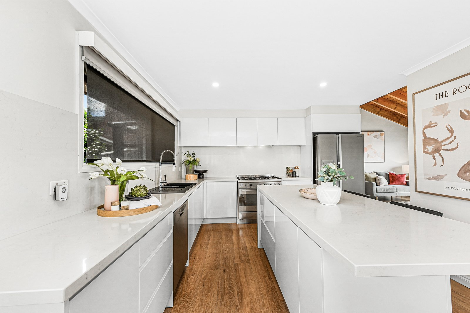 Smartly renovated throughout, the home’s interior offers a striking balance of black and white contrast, and soothing neutrals, with statement black tapware creating a striking visual aesthetic and premium Bosch /Smeg appliances gracing the showcase kitchen.