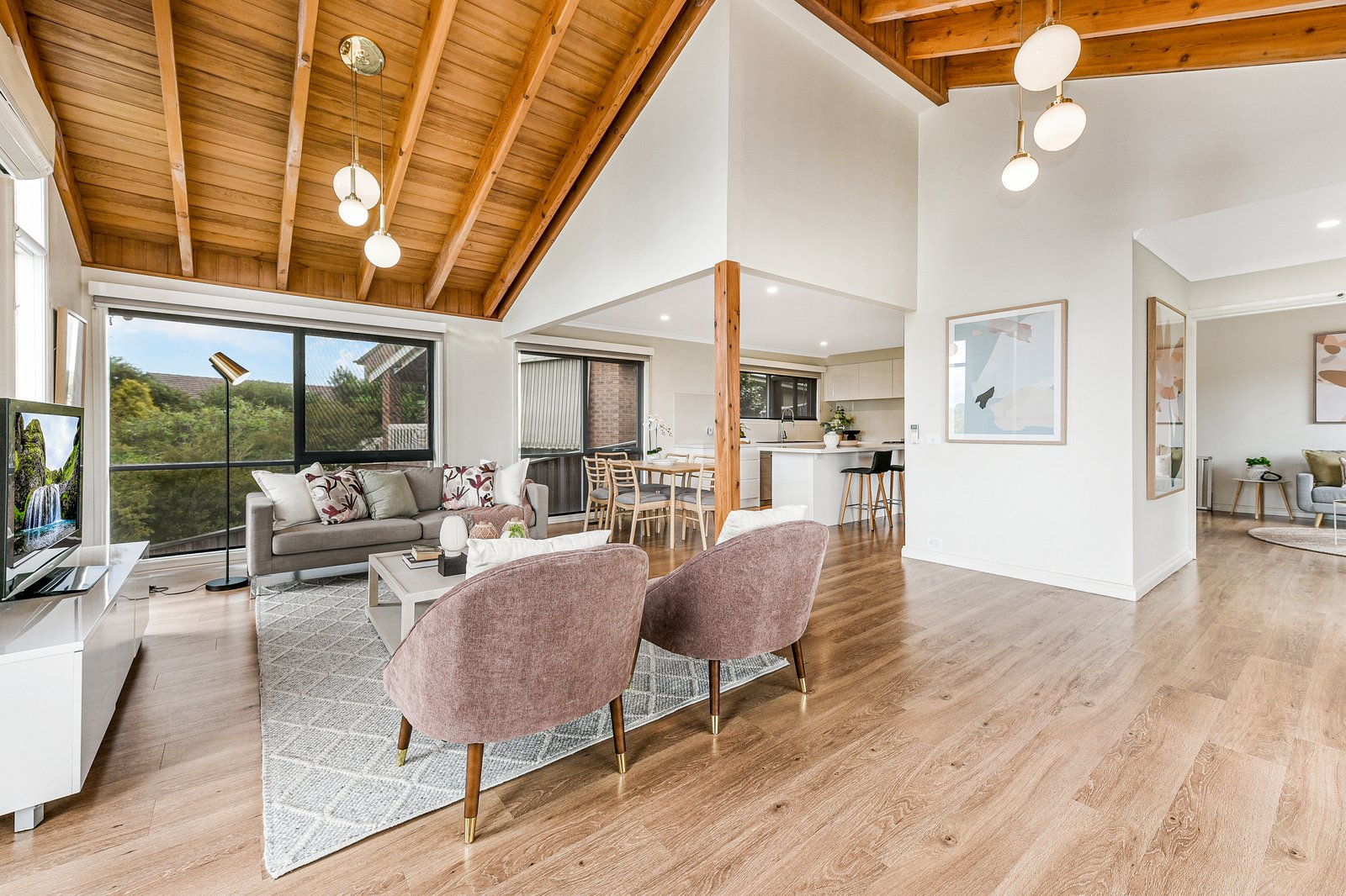 With breathtaking mountain views of The Dandenong Ranges, this panoramic property on an allotment 489m2 (approx.) offers spectacular viewing from the front balcony and the dramatic living space, heightened by cathedral ceilings and picture windows which perfectly frame the mountains.