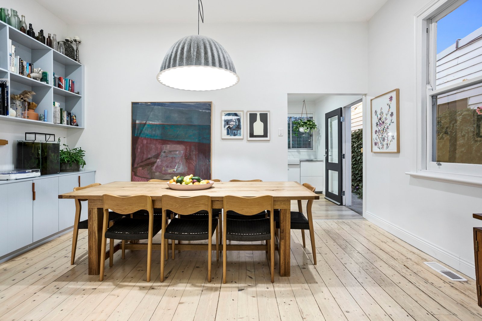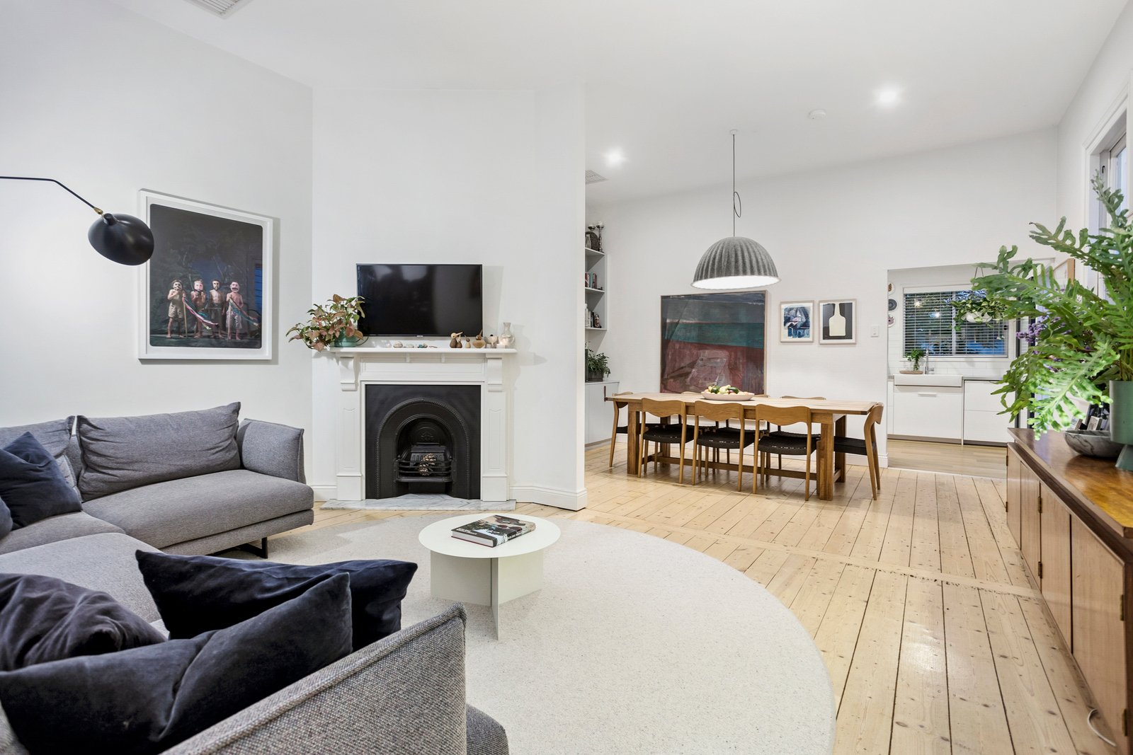 Step inside and be greeted by the grandeur of 3.3-meter high ceilings, lending an airy, open feel to the generous bedrooms. Traditional sash windows and plantation shutters add character, while the light-filled open-plan living and dining area seamlessly connect to the kitchen, creating an inviting space to relax and entertain. Throughout the home, lime washed floorboards add warmth and style.