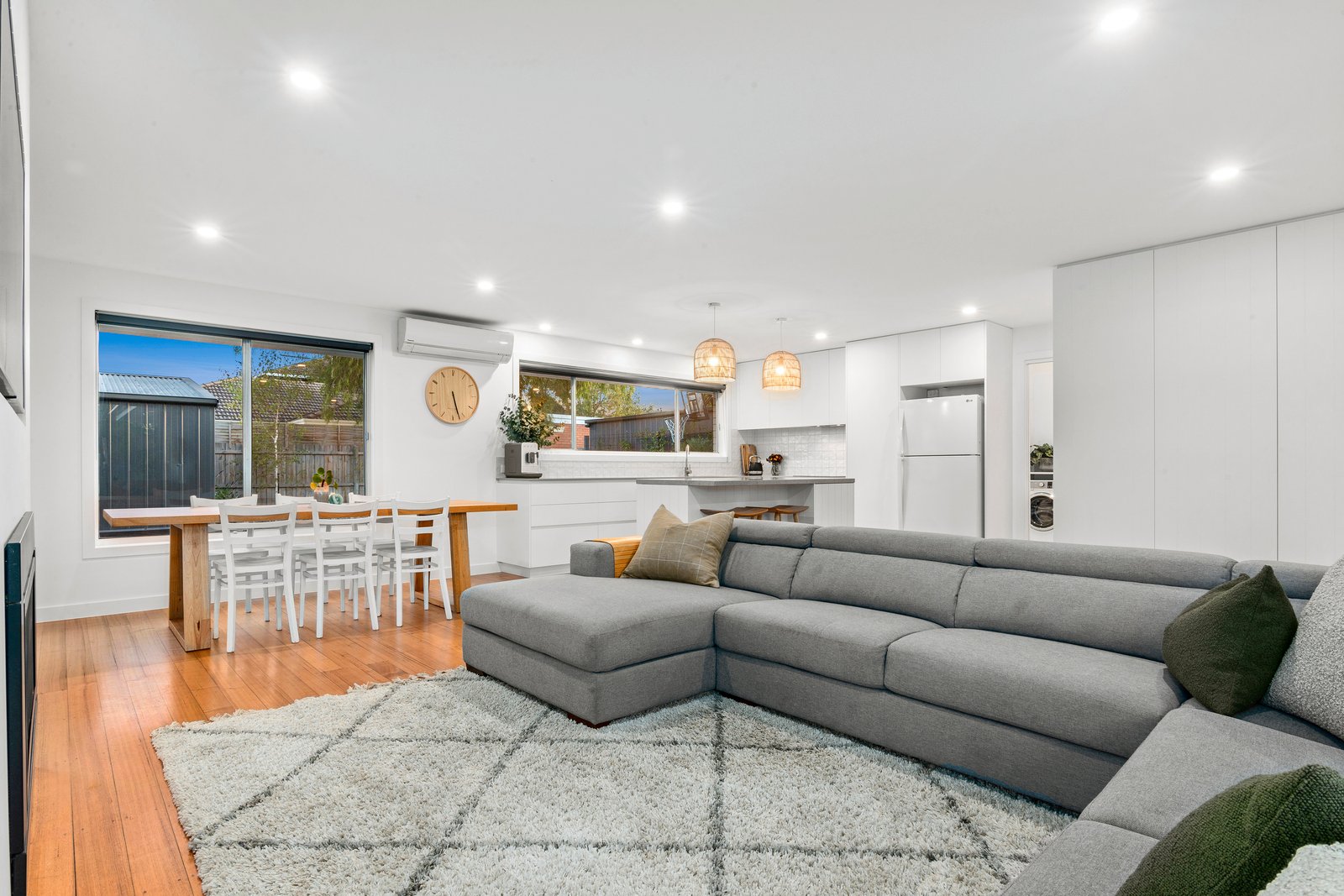 Polished floorboards and fresh white walls evoke a breezy ambience, with on-trend accents showcased throughout. The open plan living/dining/kitchen zone is awash in natural light, where you can relax by the...
