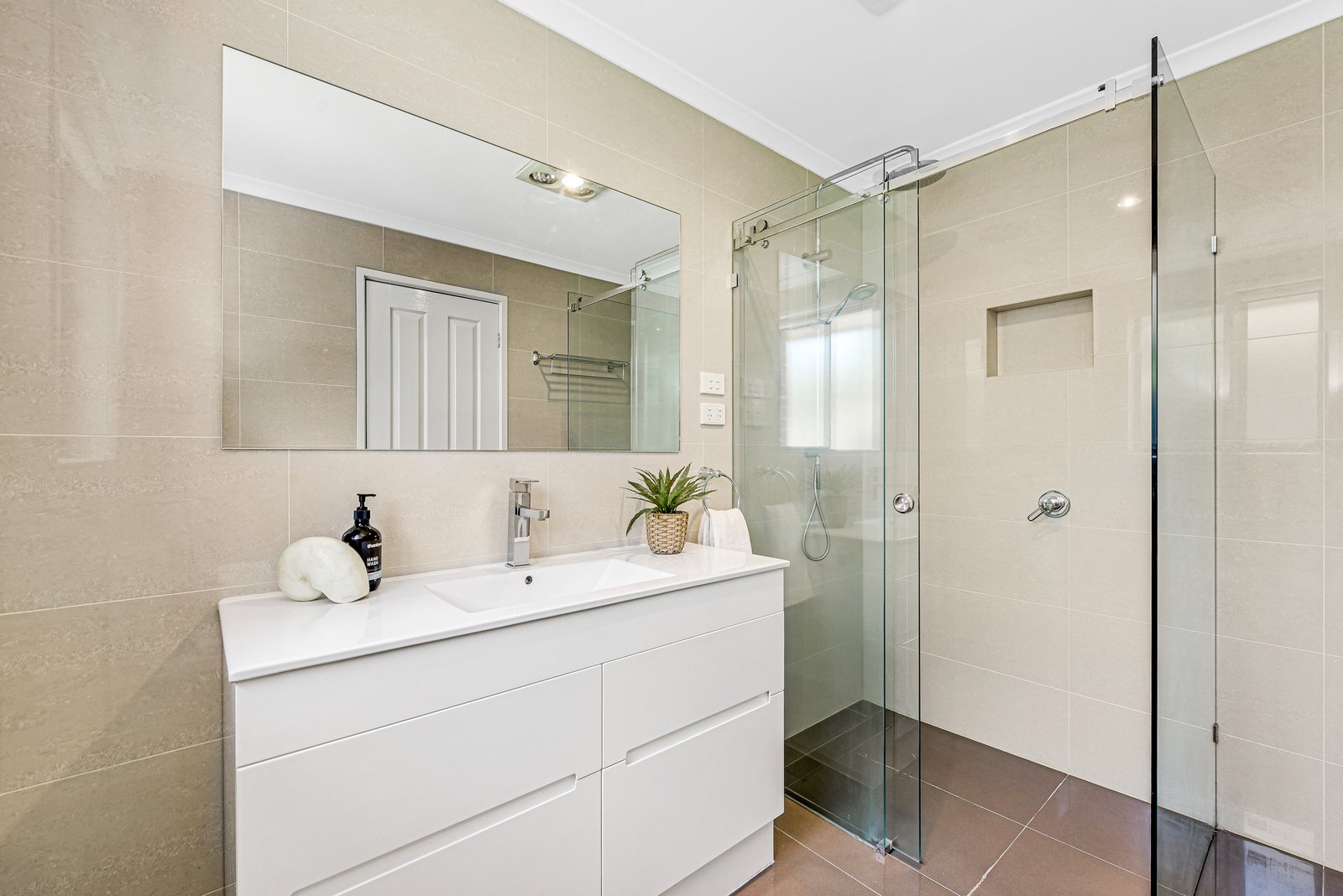 The master bedroom comes with a split system air conditioner for an ideal sleeping temperature all year long, a wardrobe for extra storage and access to a private ensuite with a luxe rain shower. Of the remaining two bedrooms, one includes a built-in robe while the other can also be used as a study with a door leading directly out to the decked entertainer’s area. Both the ensuite bathroom and the central family bath are fully tiled and include walk-in showers.