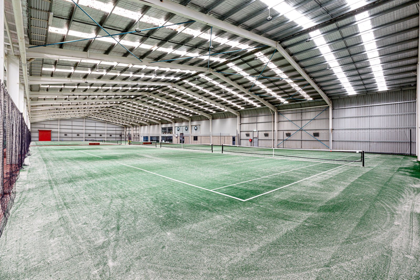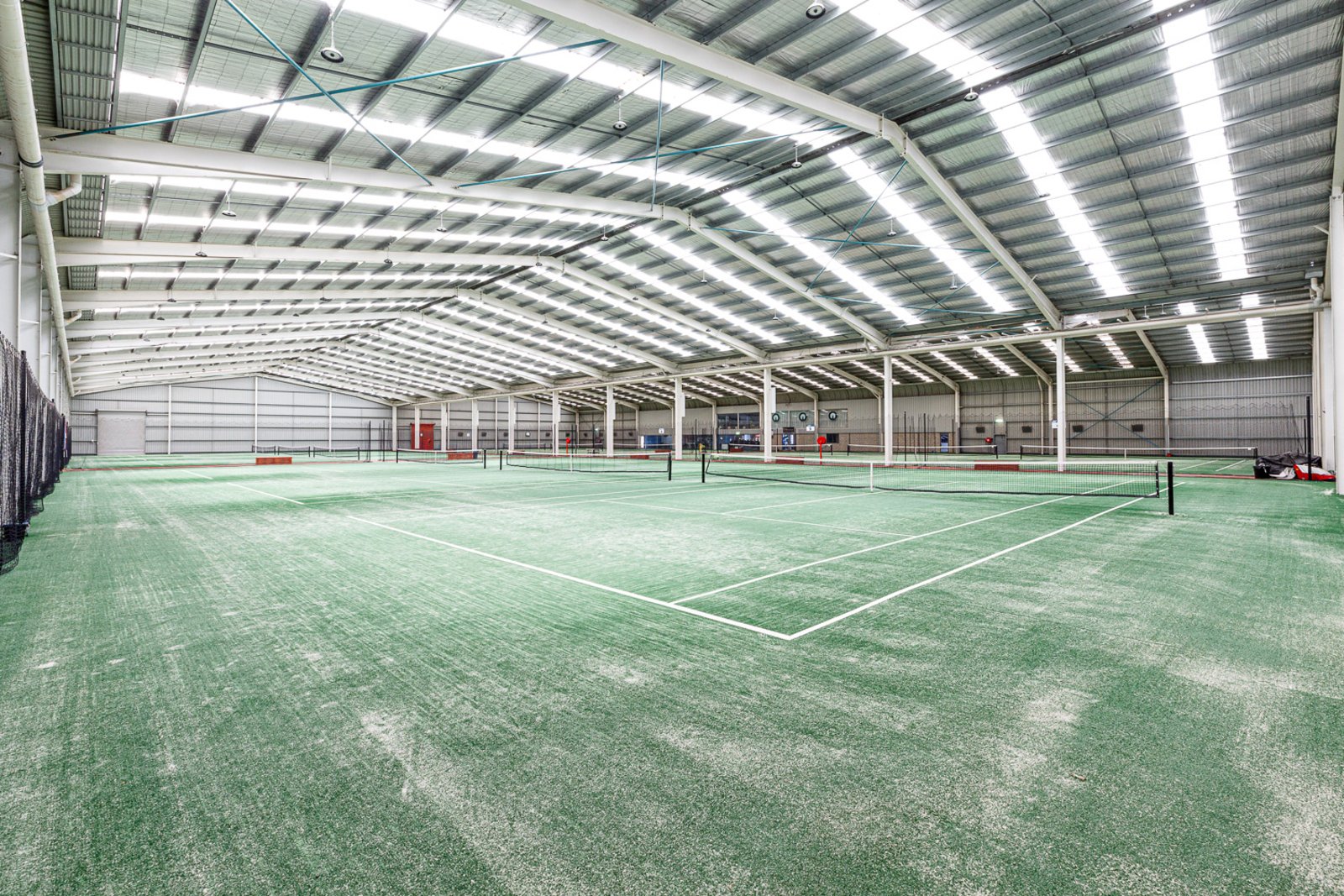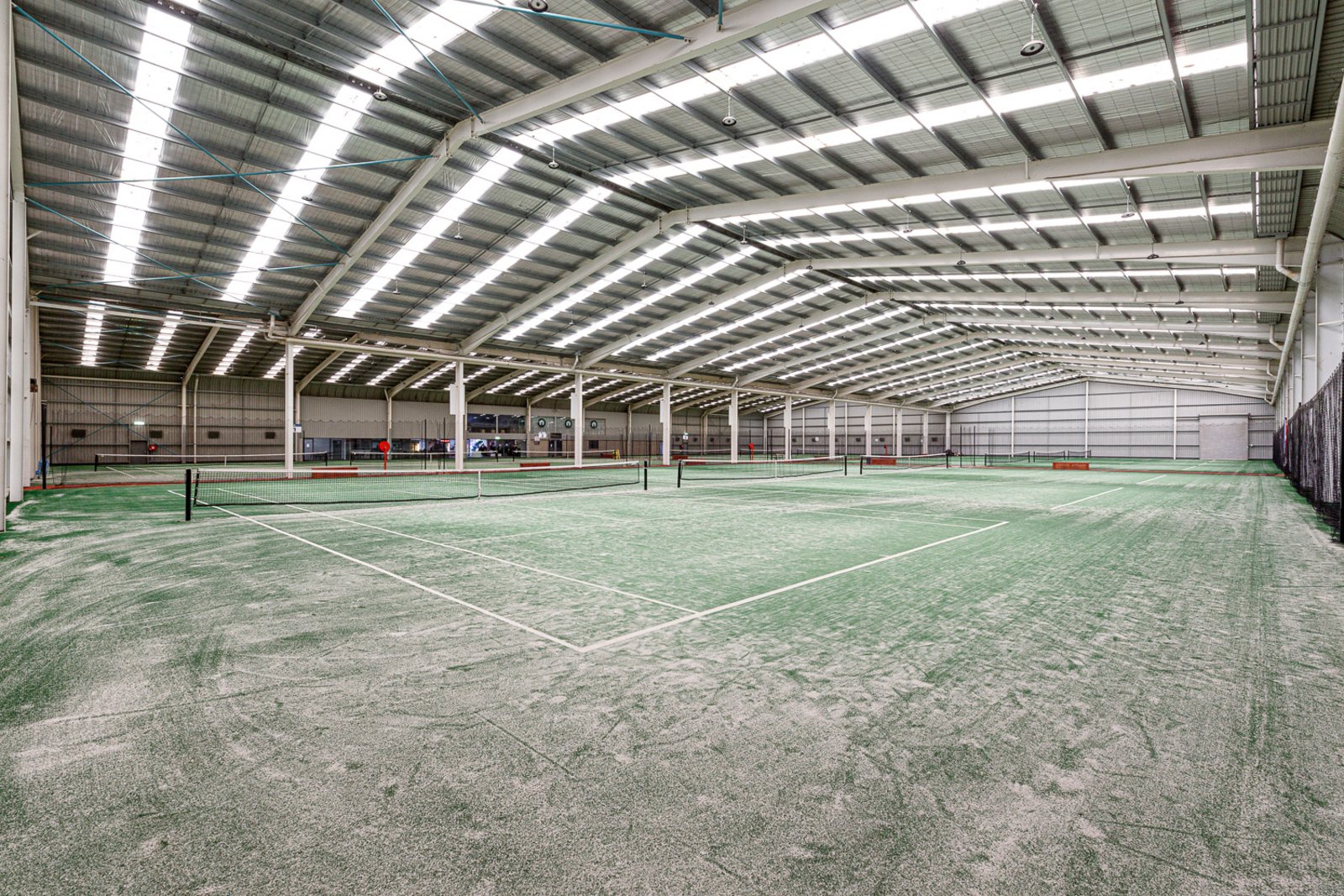 The size of the infrastructure needs to be seen to be believed. The enormous shedding spans across 12 indoor tennis courts with high clearance roof line. The approximate measurements equate to:
