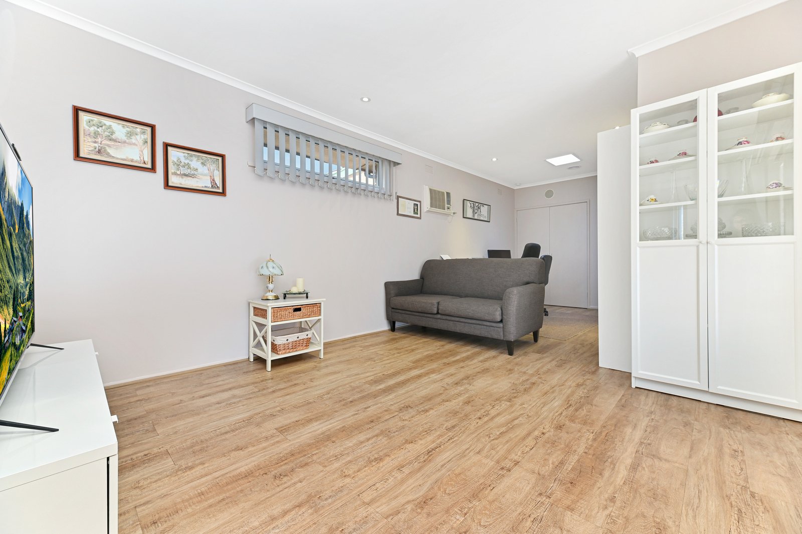 The traditional double-fronted facade and brick veneer construction give this home a timeless appeal. Inside, the timber-vinyl and plush carpet add warmth and comfort to the main spaces, while an overhead skylight and blinds allow for control of natural light. Split-system air conditioning and zoned ducted heating throughout the home.