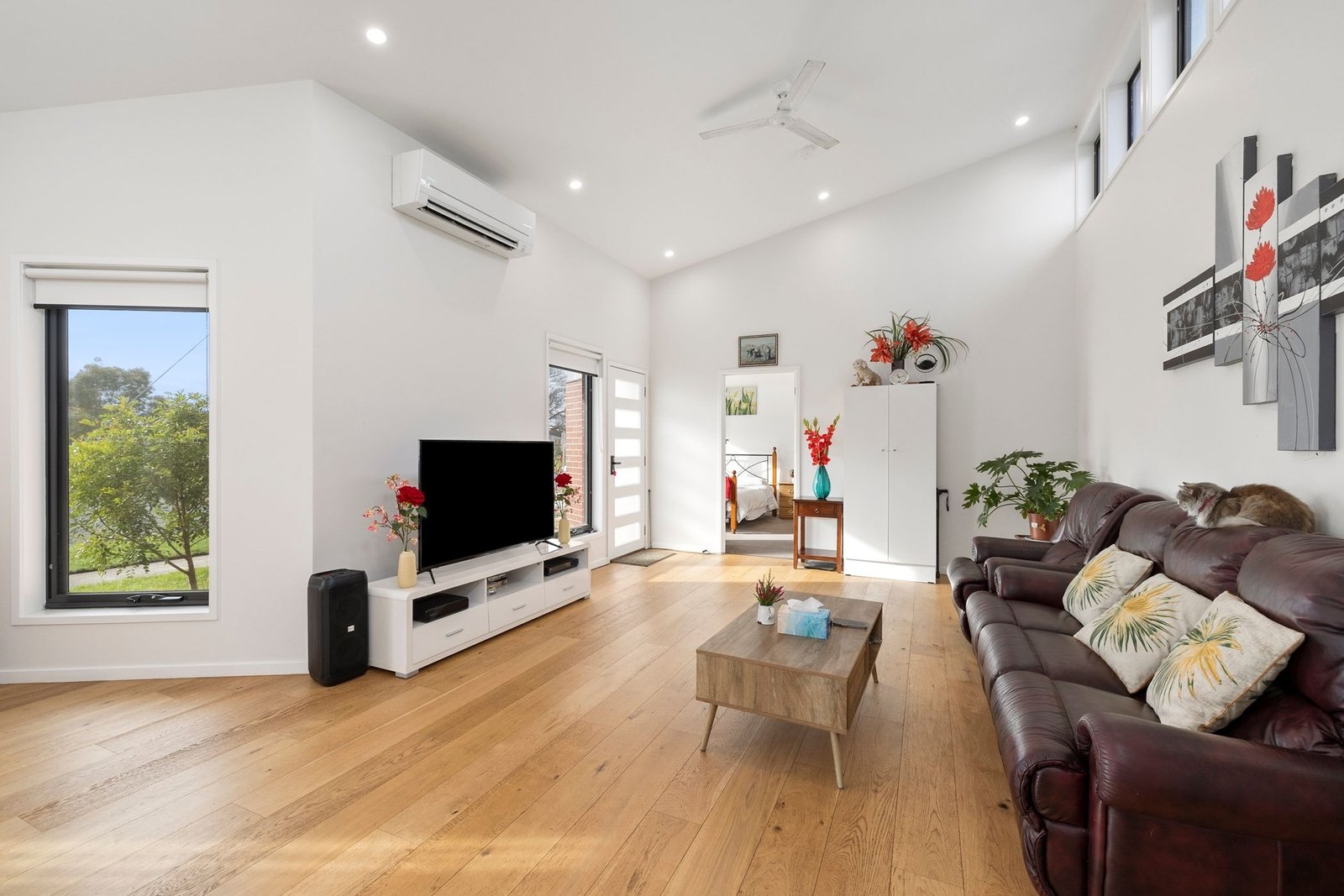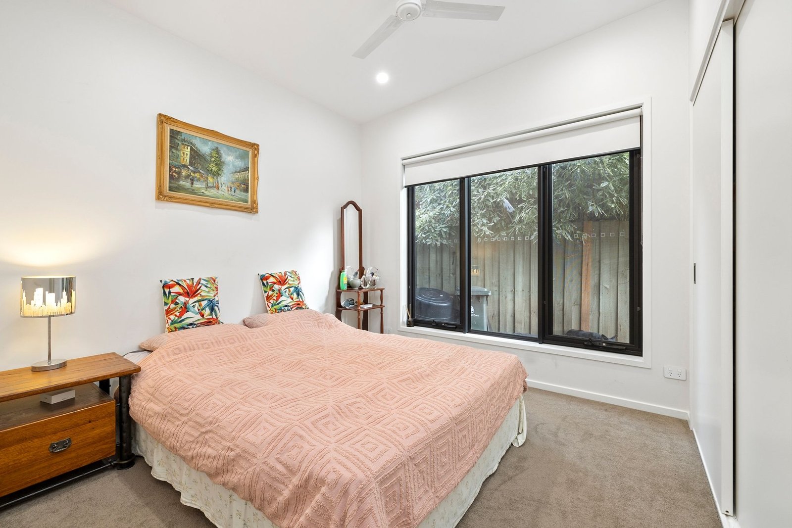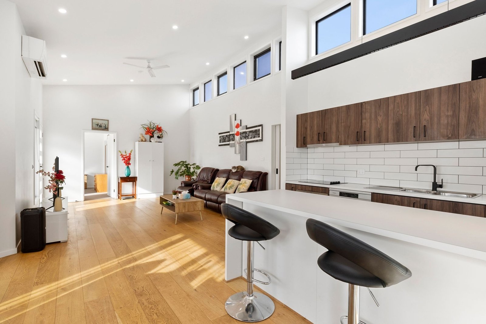 The moment you walk through the door you will be greeted by the huge pitched ceiling and abundance of natural light flooding through, the modern finishes and perfect use of space is the best part of this property. The open plan living, kitchen, dining area is perfect for entertaining, the kitchen offers ample storage, electric cooking appliances and plenty of drawer and bench space. The master bedroom has a walk in robe and ensuite with the second having a built in robe and ceiling fan and easy access to the second central bathroom that has a separate toilet for convenience. Leading outside from the dining area you have the eco decked entertaining area that is private and spacious with gated access to the front yard. The main living area has a split system air conditioner and ceiling fan above the dining area and living area. Other features include the European laundry, four electric windows in the open plan living area and being located in a quiet complex of just three with secure off street parking.