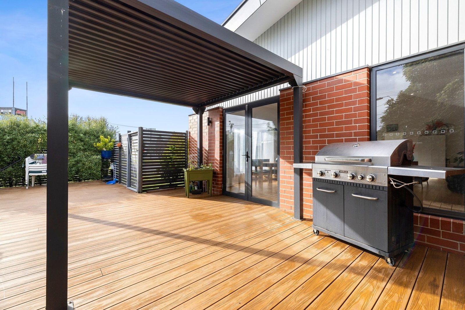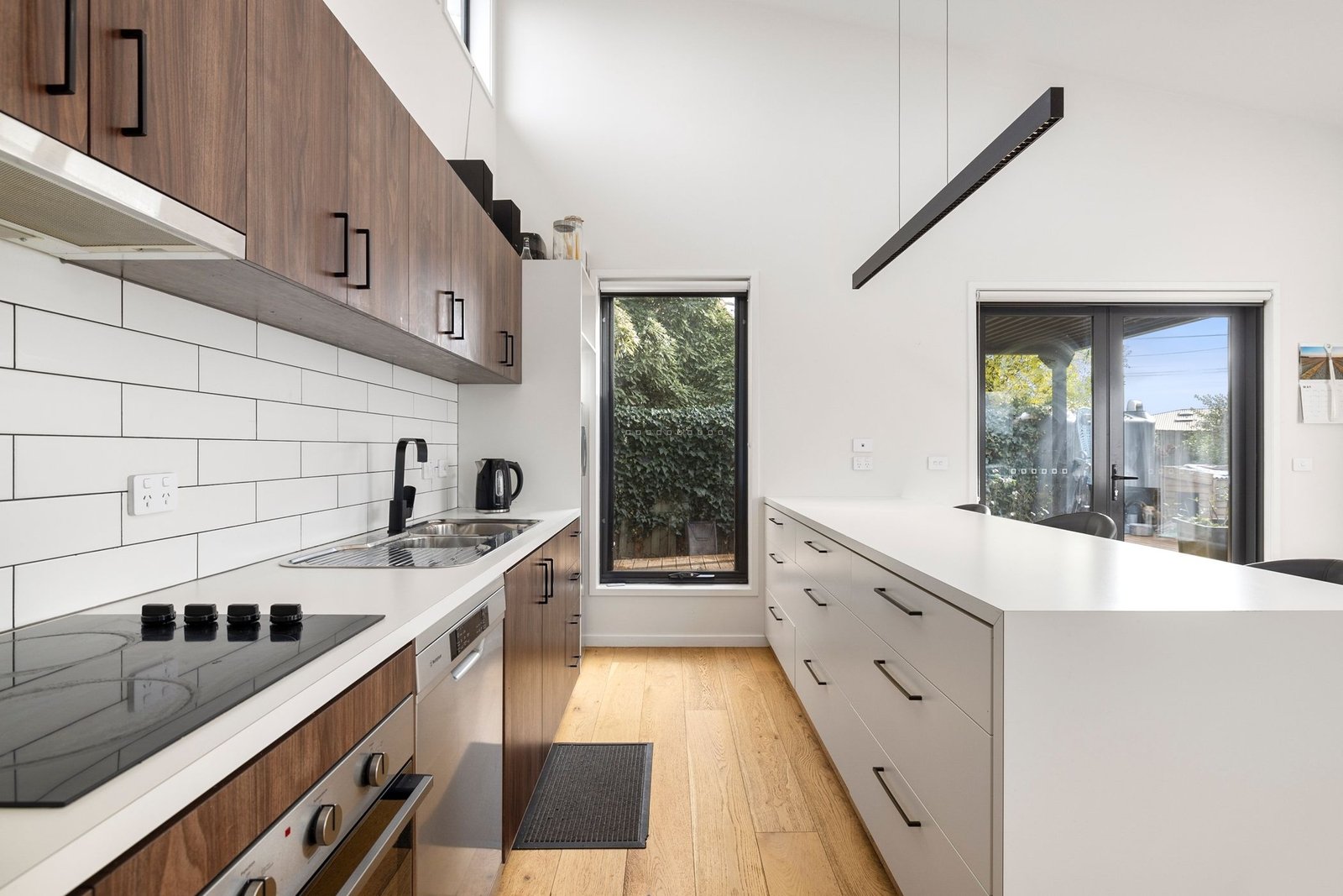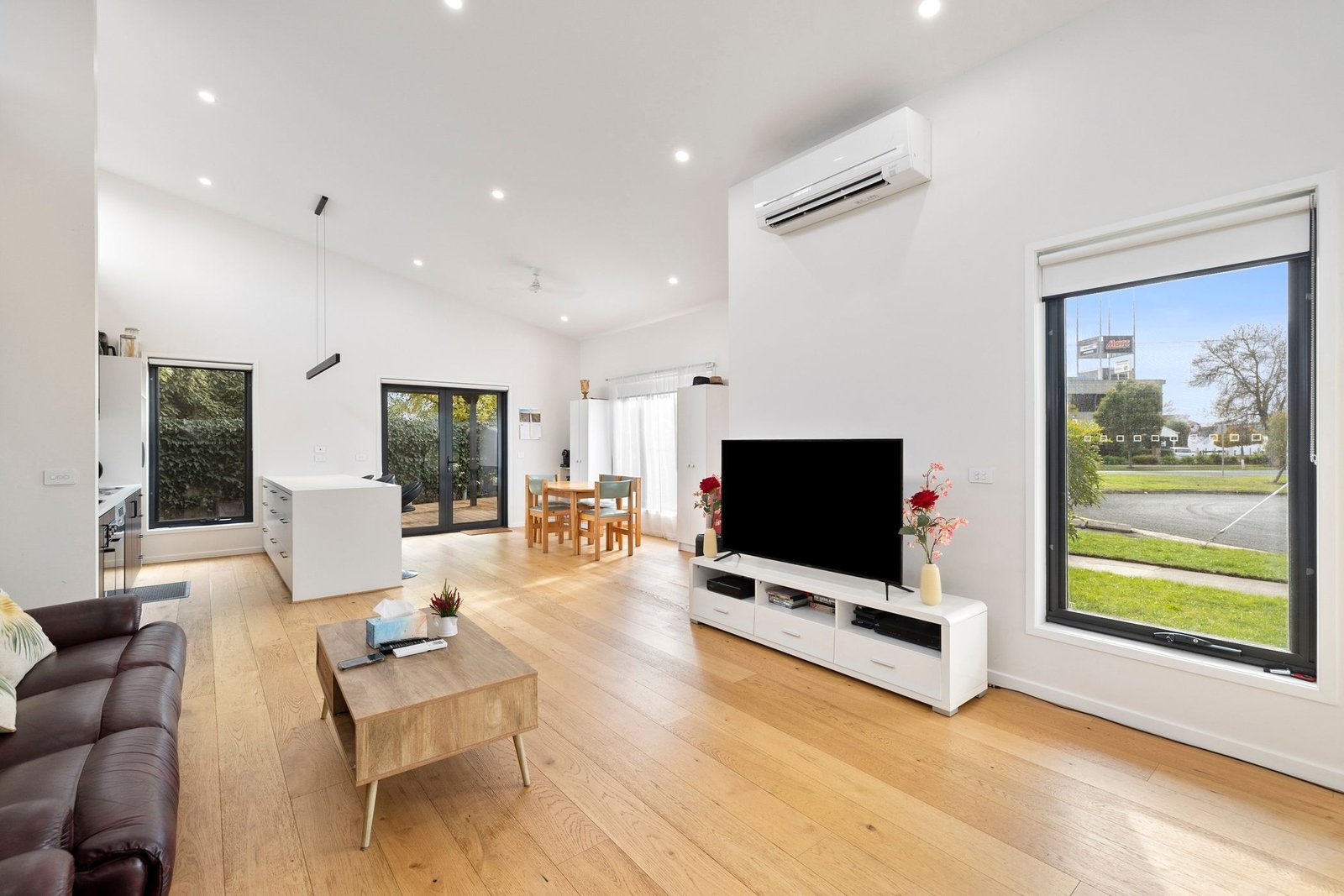 The moment you walk through the door you will be greeted by the huge pitched ceiling and abundance of natural light flooding through, the modern finishes and perfect use of space is the best part of this property. The open plan living, kitchen, dining area is perfect for entertaining, the kitchen offers ample storage, electric cooking appliances and plenty of drawer and bench space. The master bedroom has a walk in robe and ensuite with the second having a built in robe and ceiling fan and easy access to the second central bathroom that has a separate toilet for convenience. Leading outside from the dining area you have the eco decked entertaining area that is private and spacious with gated access to the front yard. The main living area has a split system air conditioner and ceiling fan above the dining area and living area. Other features include the European laundry, four electric windows in the open plan living area and being located in a quiet complex of just three with secure off street parking.