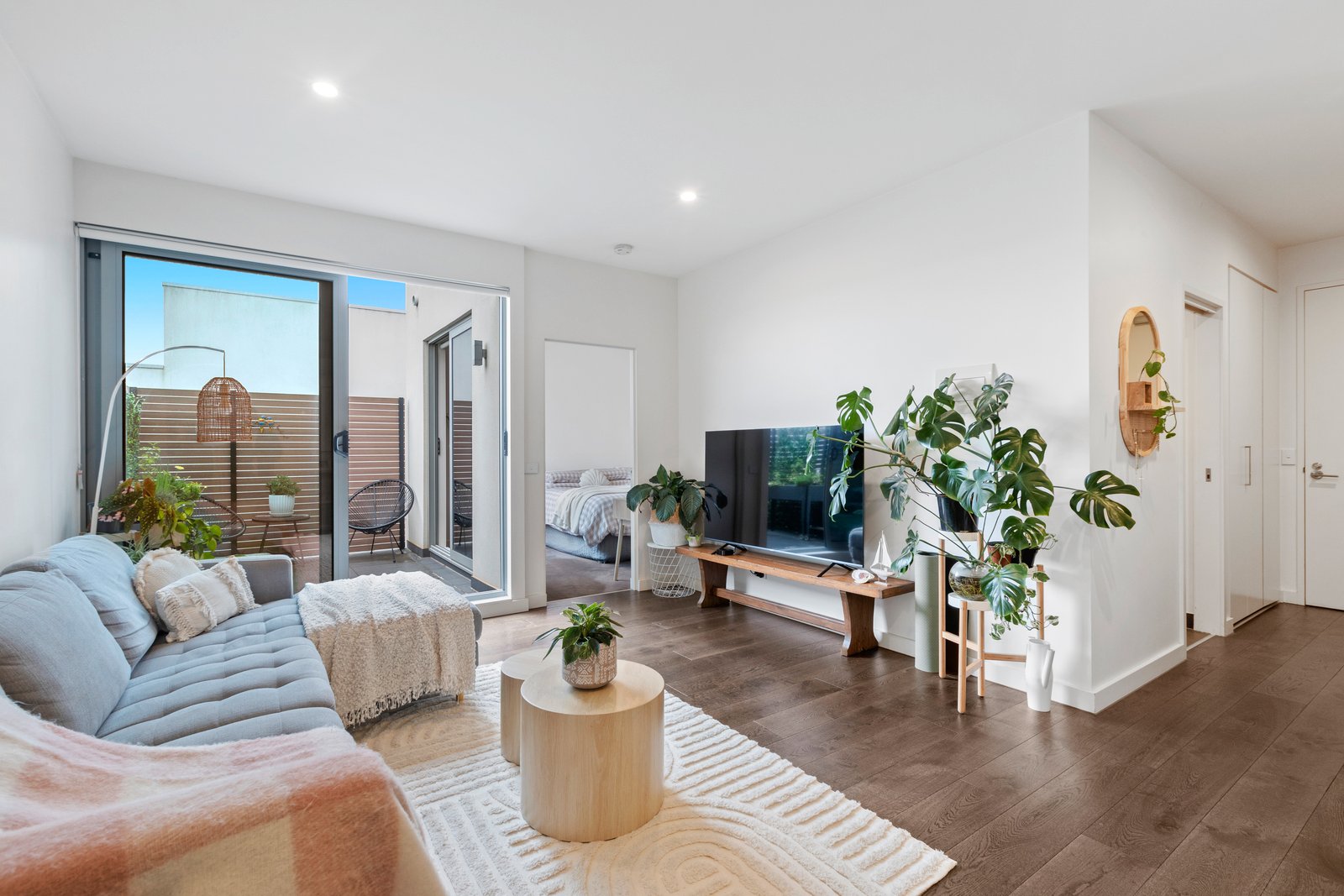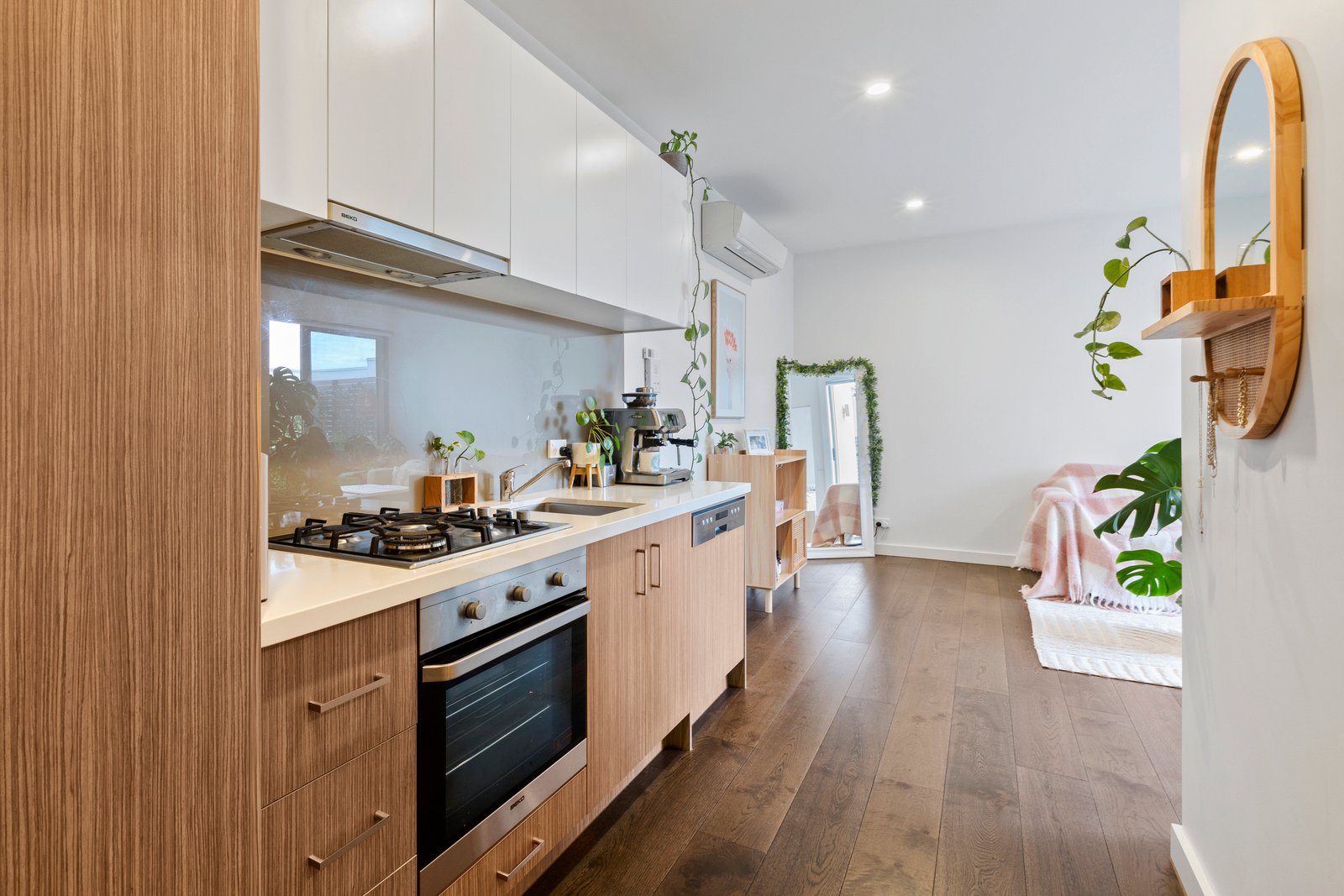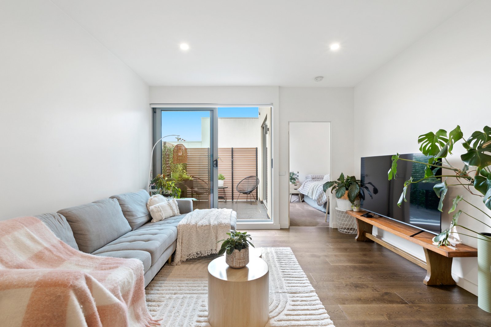 Just steps from the sand on Aspendale’s retail and rail strip, this first-floor apartment offers a super-sized reverse-cycle air-conditioning single-bedroom floorplan with large north-facing living doubled by a sun-catching balcony-terrace, and a queen-sized bedroom (also opening to the balcony) flowing through a generous walk-in robe to a smart two-way bathroom.