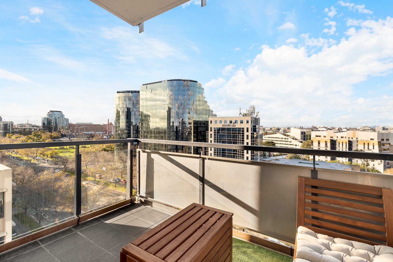 • Undercover alfresco balcony with city skyline vistas