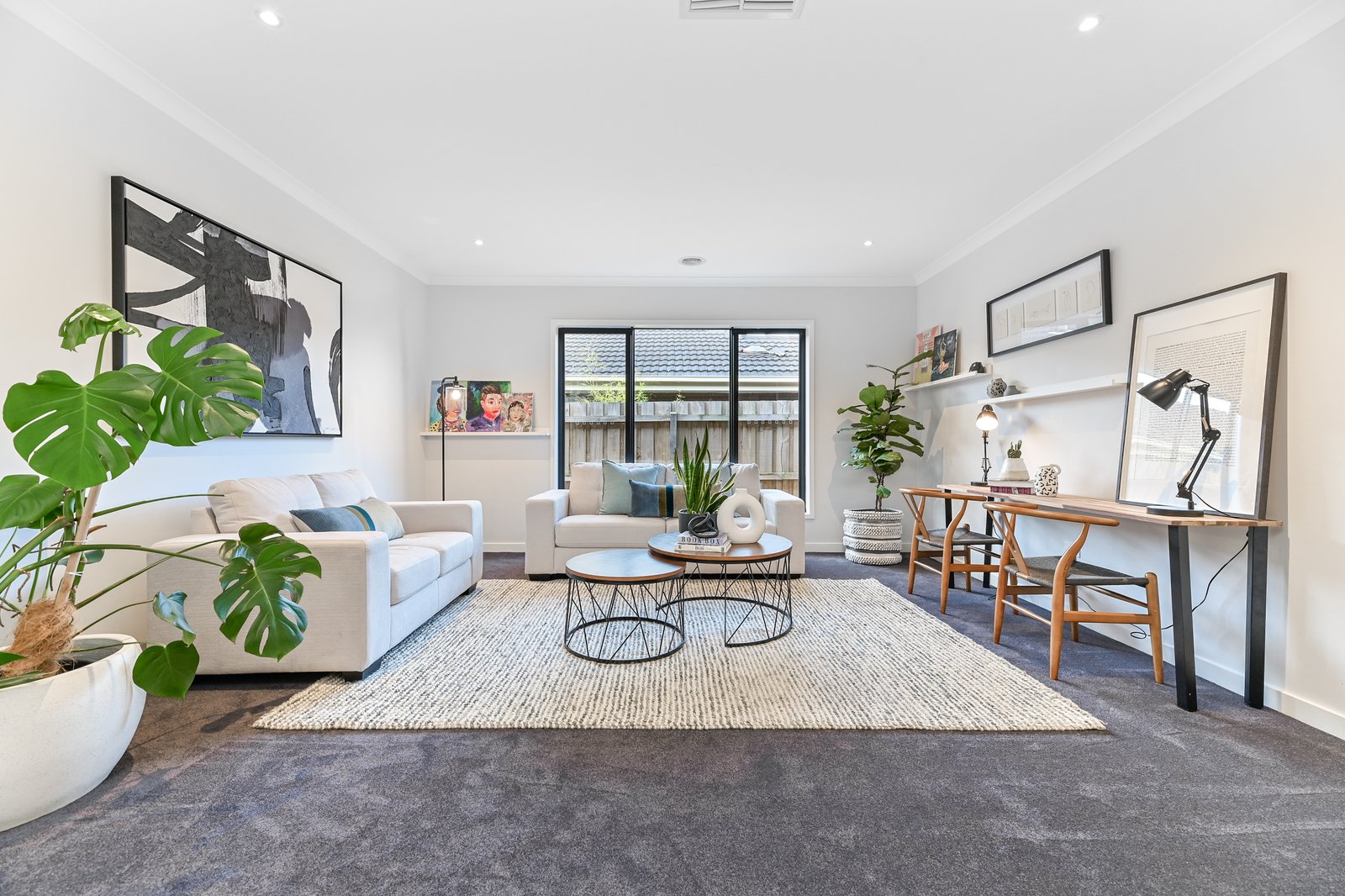 Stunning first-class single level 33sq home is an entertainer’s family dream home. Presenting in display home condition, the smartly zoned design in the school catchment for Brentwood Secondary College and Brandon Park Primary School (STSA) invites the family to relax or cook with an impressive stone island bench centrally connecting across an open plan living design with 2 living areas and dining, reserving its 4 generous bedrooms along the hallway for quiet retreat, plus an additional private room for work from home or study. Bright with north facing frontage and west facing bedrooms, the home is rich in natural light, and free flowing between its family wing and large integrated al fresco – perfecting the balance between form and function, an entertainer’s dream. A modern stylish array of finishes brings texture and warmth to the home, with Dolomite grey floor tiling underfoot in the living areas, moody dark carpet in the bedrooms and on trend geometric tiles gracing the kitchen, powder room and laundry. With its picture windows infusing lovely light into the master bedroom, parents are afforded a space that feels like a sanctuary, further enhanced by twin basin vanity and a double spa bath in the lavish sized ensuite. A party sized shower, additional twin basin vanity in the family bathroom and a separate designer powder room adds to the appeal for families with children or grandchildren. For both young families and downsizing retirees, modern living is made easy with high speed optical NBN and large low maintenance synthetic lawn backyard and exposed aggregate pathways across the evergreen succulent gardens. Set up for sustainability with 12 solar panels to help power the home, central heating & evaporative cooling, and a double garage with secure internal entry, this is the freedom of a move-in contemporary setting close to schools, parks and transport connections including the Eastlink and Monash Fwy, the coming revamp of Brandon Park Shopping Centre, The Glen, Pinewood Village, Jells Park, Lum Reserve and prized education at Caulfield Grammar, Wesley College and Monash University.