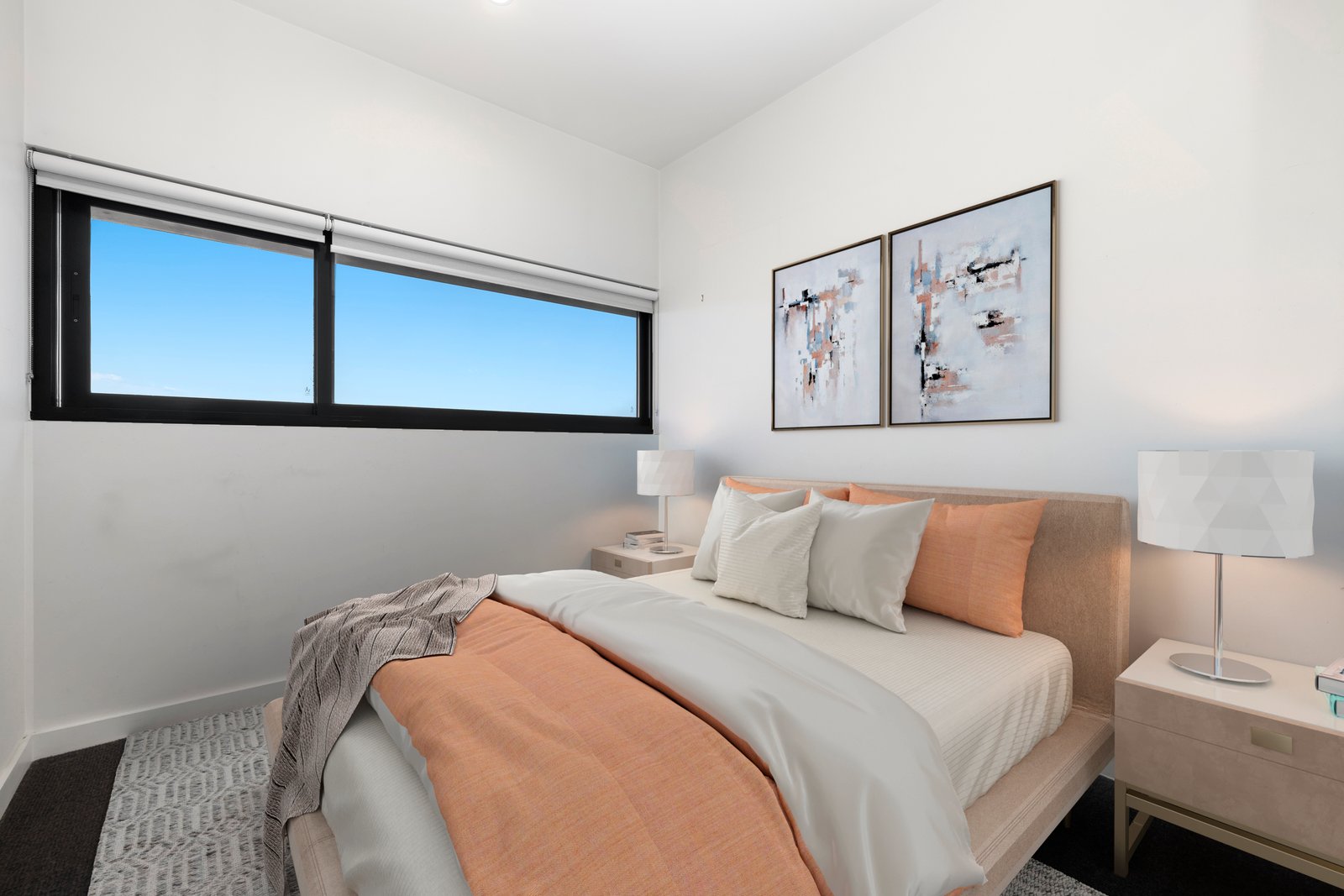 A pure indulgence experience offering a main bedroom (BIRs) with side windows and chic ensuite. The second bedroom is also carpeted and offers built-in robes with the benefit of the second bathroom. Extras include reverse cycle air-conditioning, secure car space and storage cage.