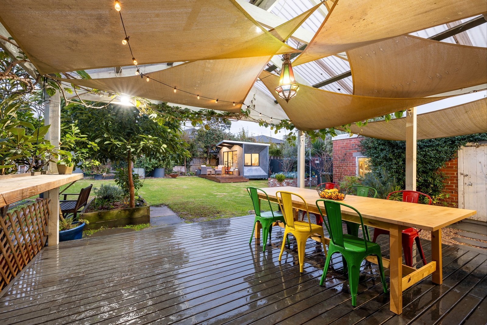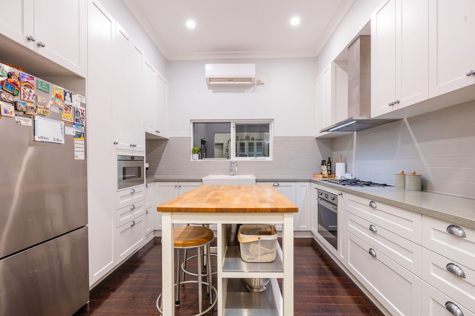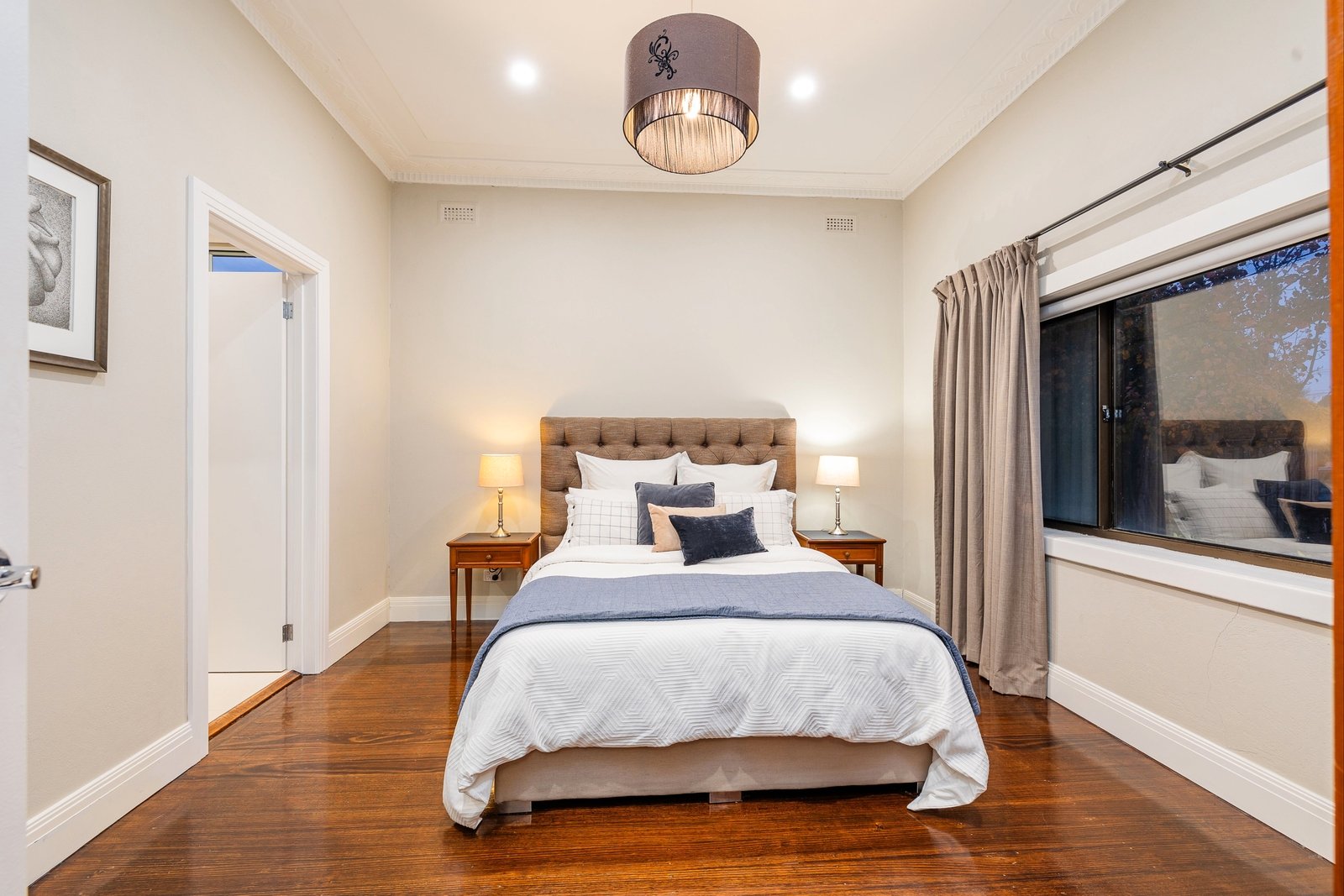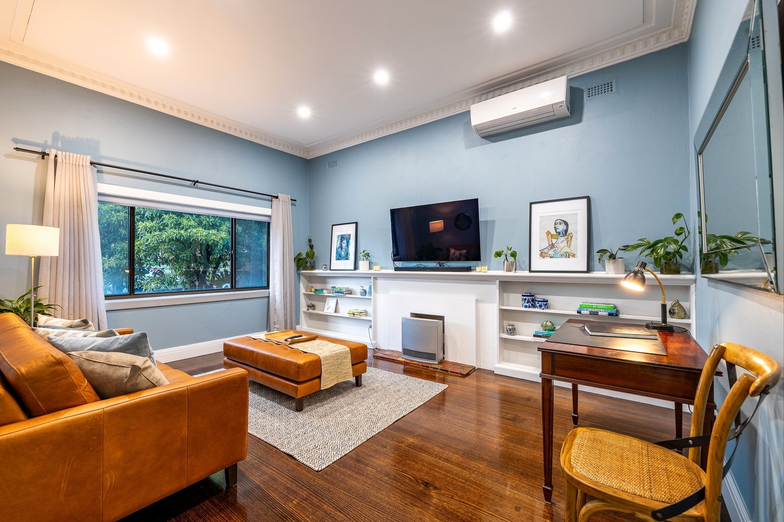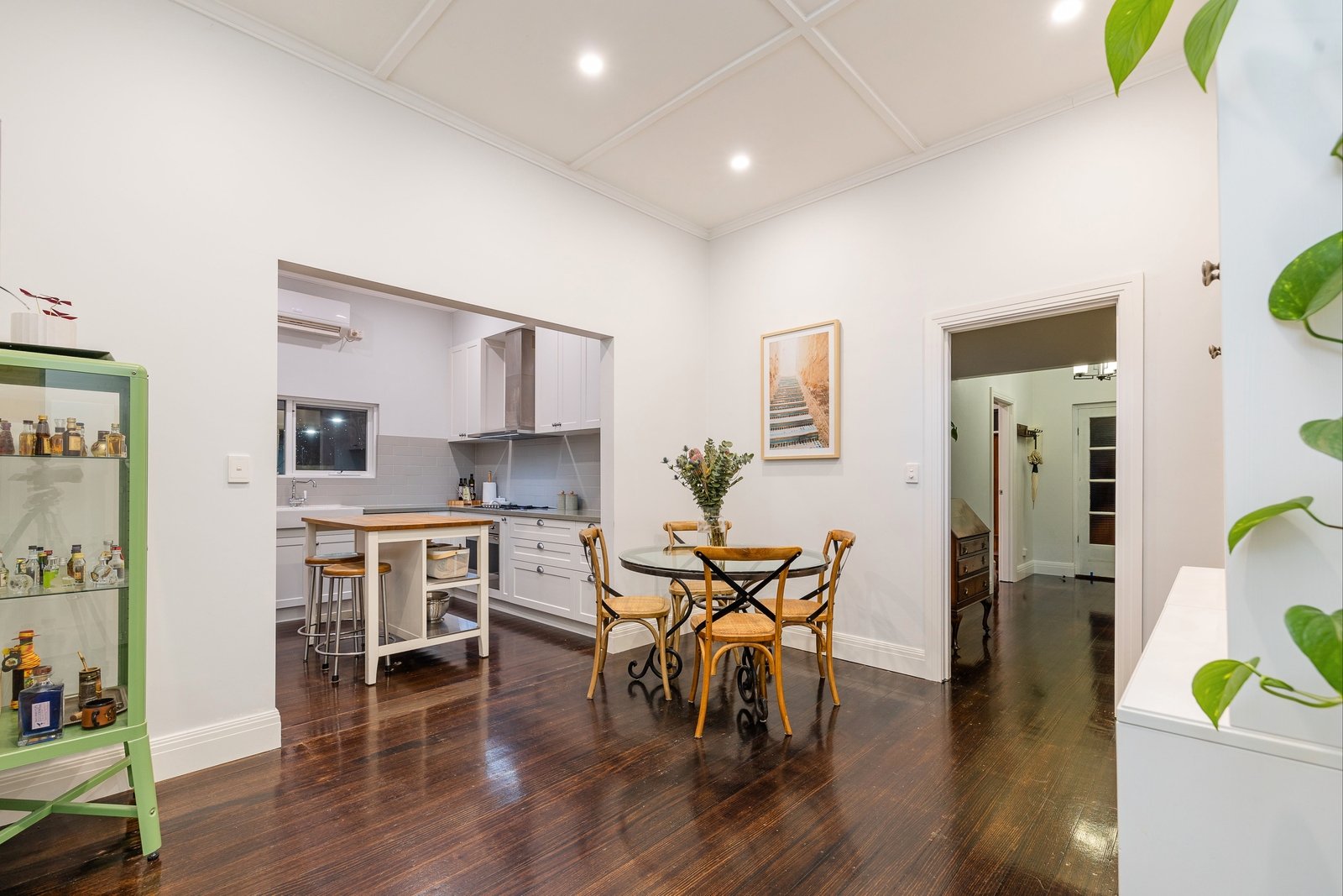Retaining some of its period character including rich timber floors, decorative cornices and ceiling roses, the heartwarming interior flows from a formal lounge to a modern kitchen/meals area featuring stone benches, Smeg cooking appliances and Asko integrated dishwasher.