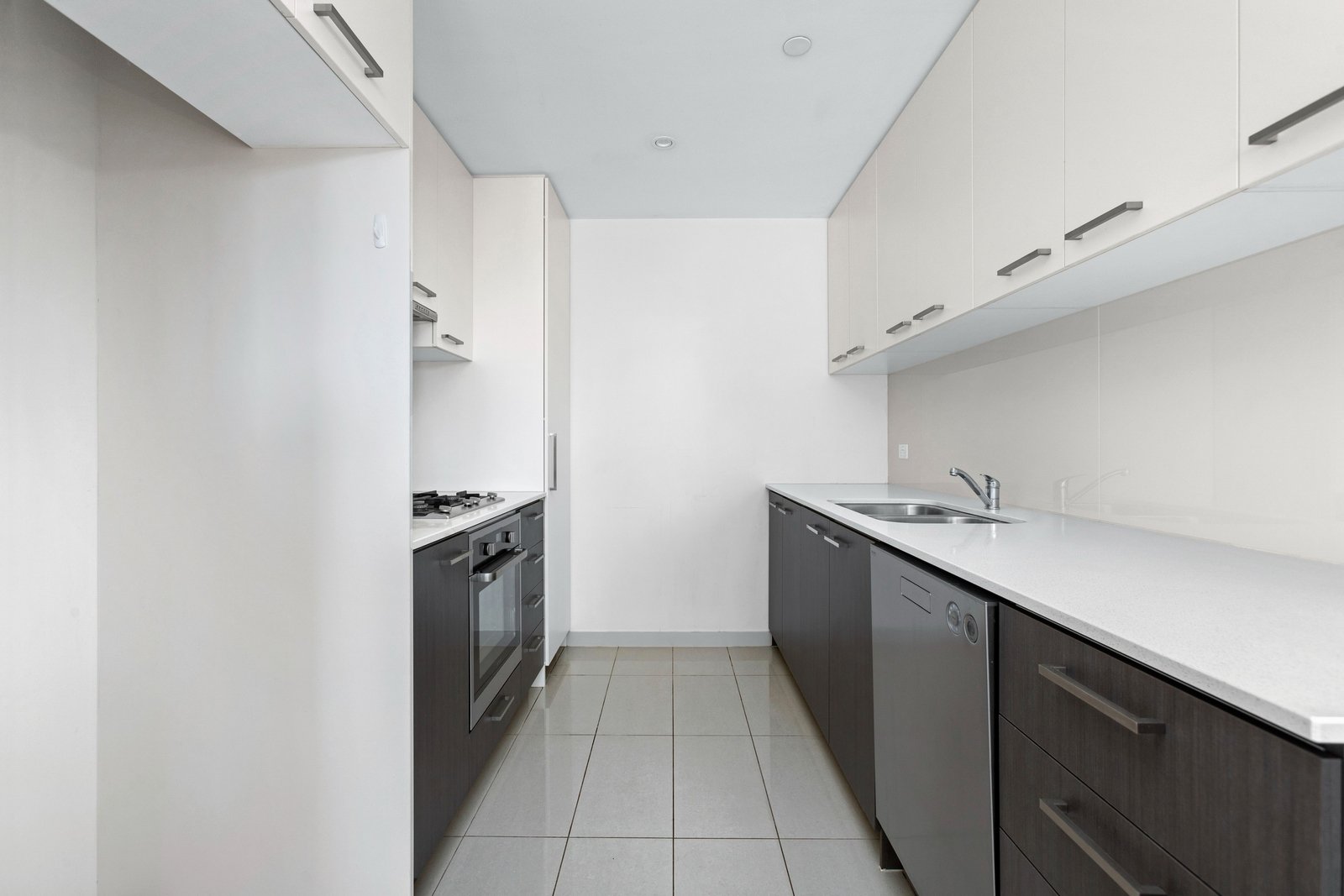 The modern kitchen boasts stainless steel appliances, ample bench space, and storage. With a gas cooktop, electric oven, and dishwasher, this kitchen is well-equipped for culinary adventures. The apartment also includes a convenient European laundry.