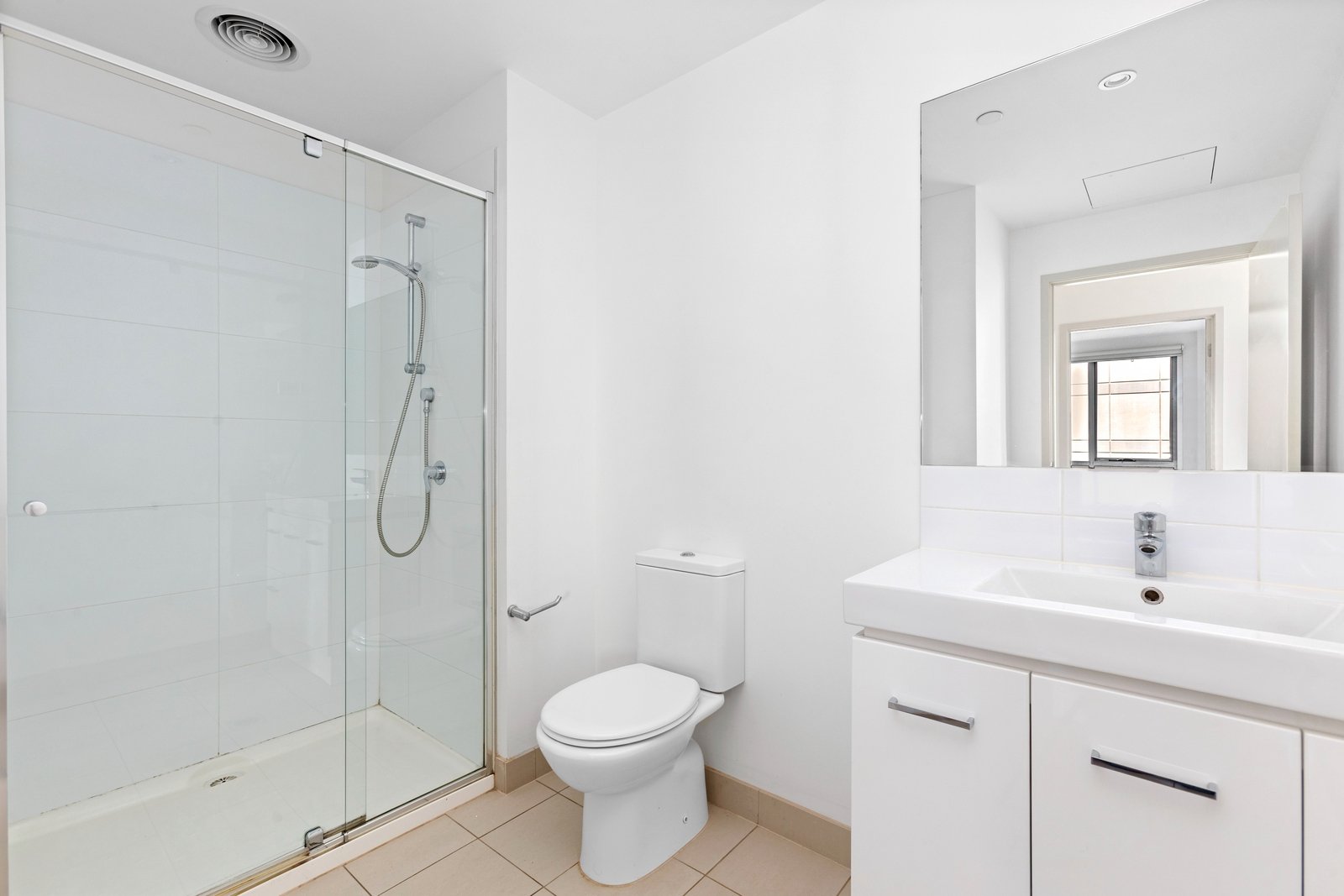 The bathroom features tiled floors, a vanity, toilet, and a walk-in shower, offering a functional and stylish space. For added security and peace of mind, the building is equipped with a video intercom system.