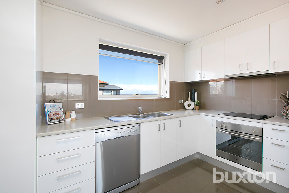 Could this be Mordy's best kept secret? Positioned on the beachside of an exclusive street, set amongst fine homes, this truly fabulous renovated apartment laps up lavish views right around the bay. Ideally located at the rear of the block the second floor home has been primped and preened to provide stylish, carefree living. Glossy tiles and plush carpet feature through the living area where a large lounge looks across the rooftops to Beaumaris beach and opens out to a sundrenched balcony; a versatile & spacious separate room gives options of a second bedroom or additional sitting room. The contemporary kitchen enjoys vistas down to Mornington and boasts as-new stainless steel appliances and a generous meals area. Of good proportions and enjoying yet more views, the main bedroom features a wall or robes and is serviced by a crisp bathroom with plenty of storage and facilities for laundry along with a separate WC. Air-conditioning and allocated parking with storage plus communal gardens are also on offer. A stone's throw to the beach and just moments to the station, cafes and shops of Main St. Low maintenance living could not be better positioned! For more information on this stylish beachside apartment, please contact Aidan Oke 0430 137 587.