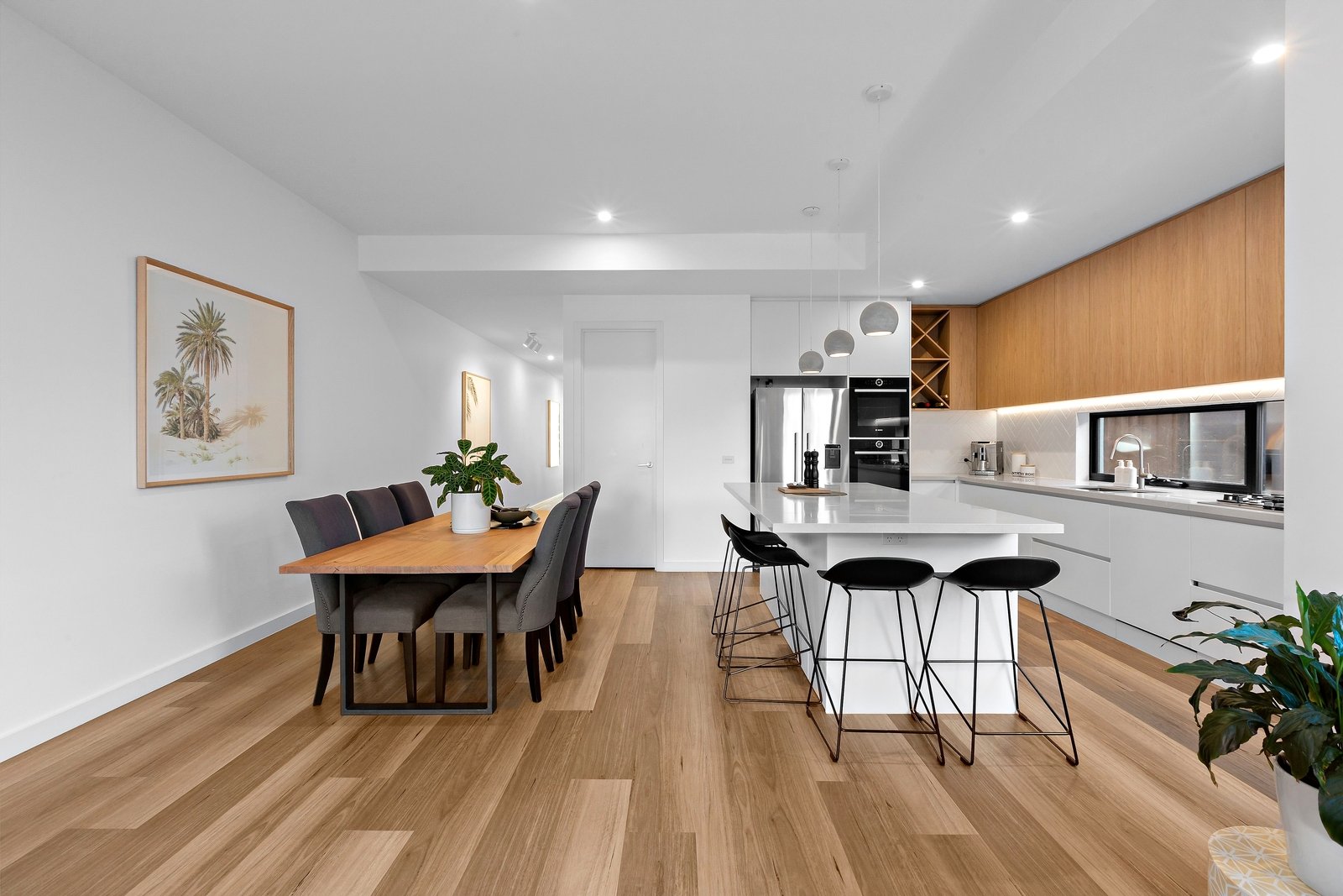 The epitome of coastal sophistication, this contemporary ‘as new’ four bedroom residence is poised for a coveted lifestyle steps from the village and the bay. Beyond the striking façade, discover a showstopper that’s perfectly designed for easy family living and entertaining, with meticulous attention to detail and the ultimate in luxury appointments. The sleek Bosch kitchen is a masterpiece with two pyrolytic ovens and an integrated dishwasher, walk-in pantry, stone island bench and window splashback; accompanied by a light infused open plan living and dining space. Seamlessly transitioning to an alfresco bluestone patio, you’ll love to host family and guests outdoors in the sunshine, surrounded by beautiful low-fuss gardens. All four bedrooms feature individual split systems - the elegant downstairs master retreat with ensuite, walk-in robe and private outdoor access - while three upstairs robed bedrooms share a sublime family bathroom with freestanding bath, and stylish second living zone. Every comfort is assured with underfloor heating to both bathrooms, two powder rooms, soft close and custom cabinetry, LED feature lighting, a water tank, solar panels, double auto garage and fabulous outdoor hot/cold shower. In a location that’s hard to beat; this stunning home is 250m approx. from the train station, and few steps further to cafes, shops, schools, reserves and glorious Seaford Beach.