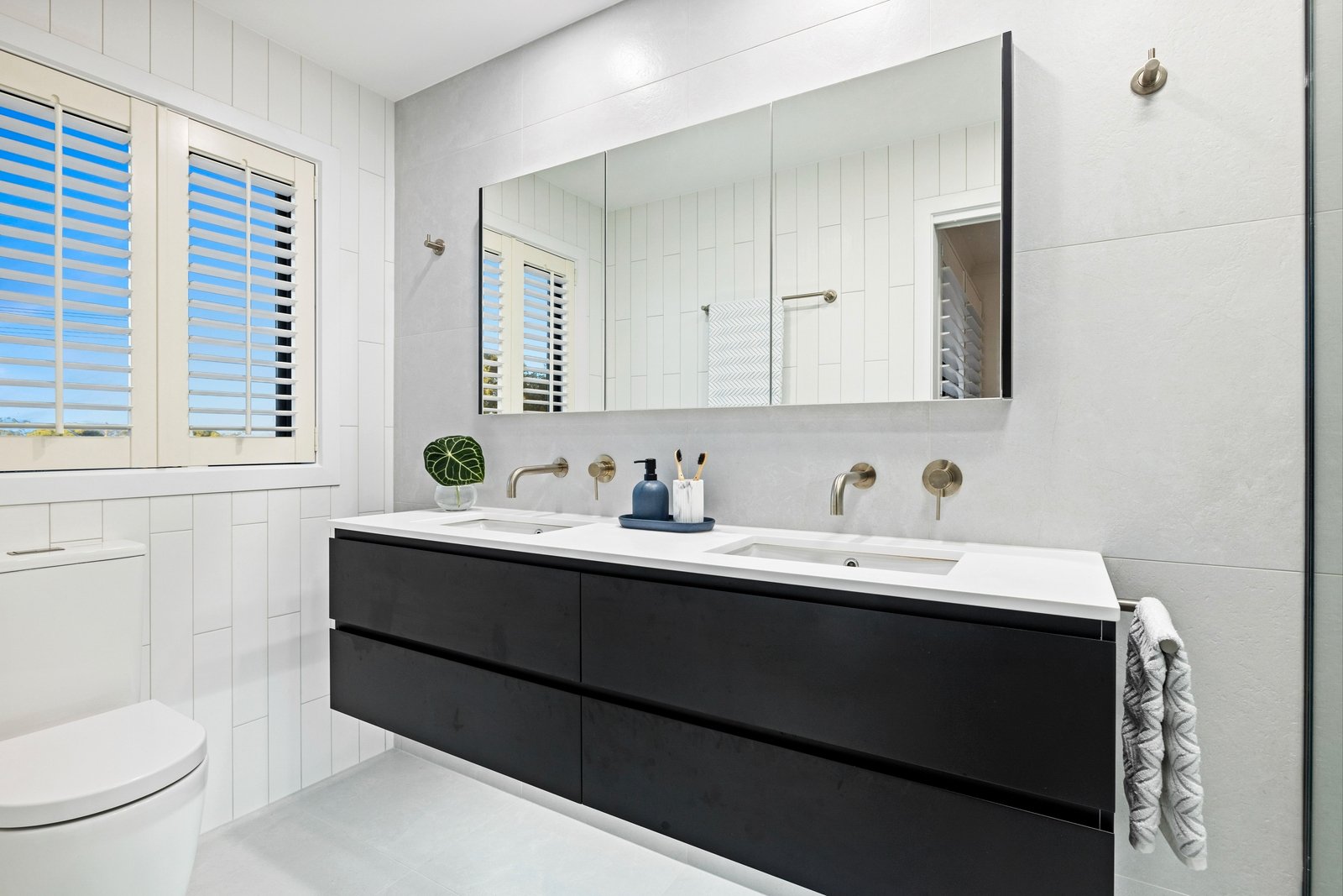 Three large bedrooms are positioned upstairs including the exceptional master retreat with walk-in robe, stunning as-new designer ensuite and balcony. The recently renovated, equally impressive main bathroom services the remaining bedrooms and includes floor-to-ceiling tiles, a sumptuous bath, twin vanity, rain shower and brushed nickel fixtures.