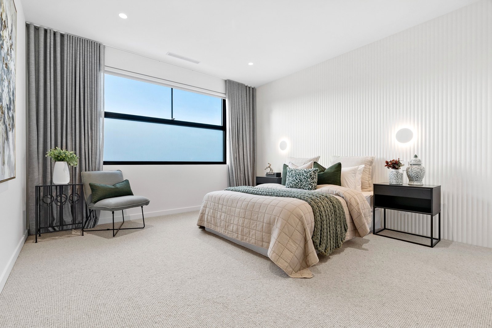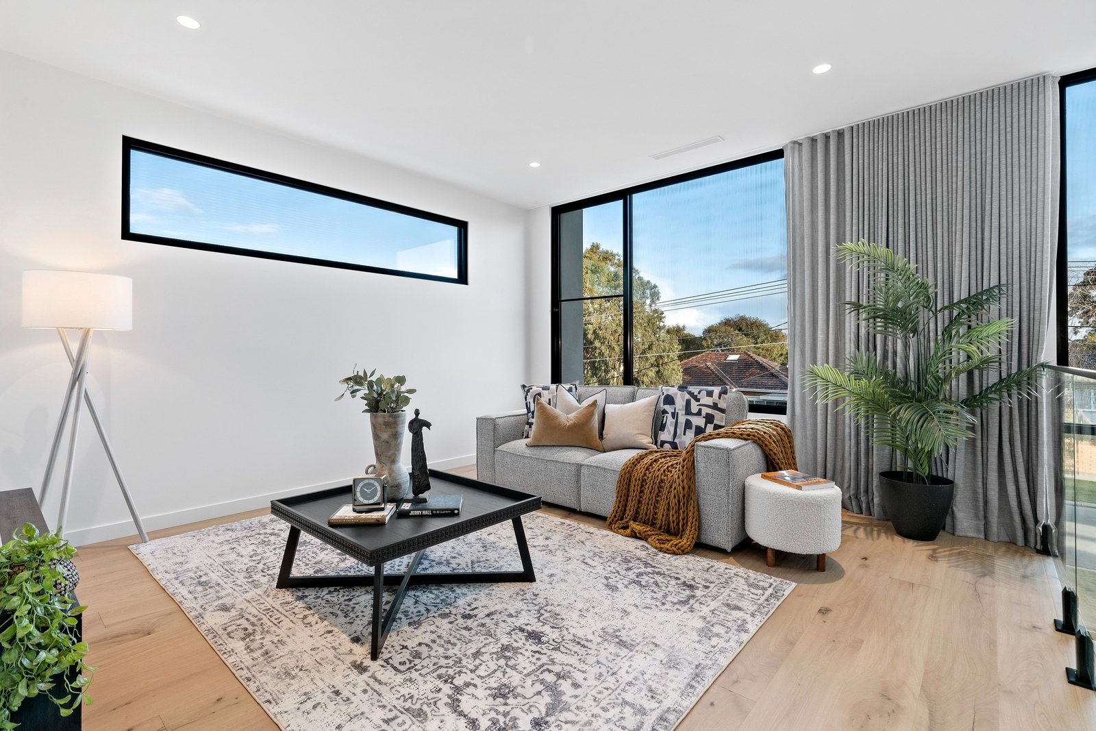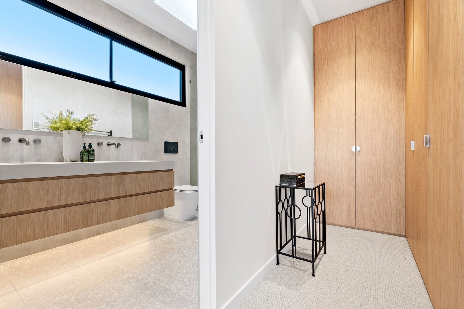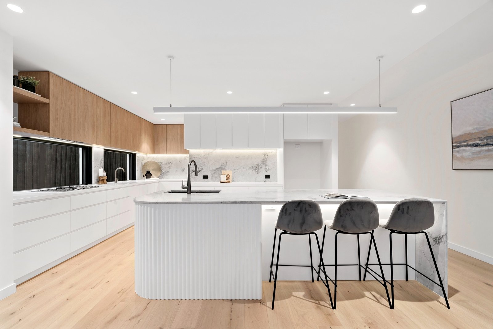 Full height doors, luxury sheers & block-out blinds and reams of storage are the hallmarks of this world-class property, while each of the bathrooms headline underfloor heating & heated towel rails plus superb tile choices, brushed gun metal tapware and accent lighting all adding to the calibre of the build. A large laundry, striking guests’ powder room and double auto garage are also offered, together with app-enabled HikVision CCTV & intercom and a Paradox alarm & control system plus MyZone ducted heating/cooling and ducted vacuum.