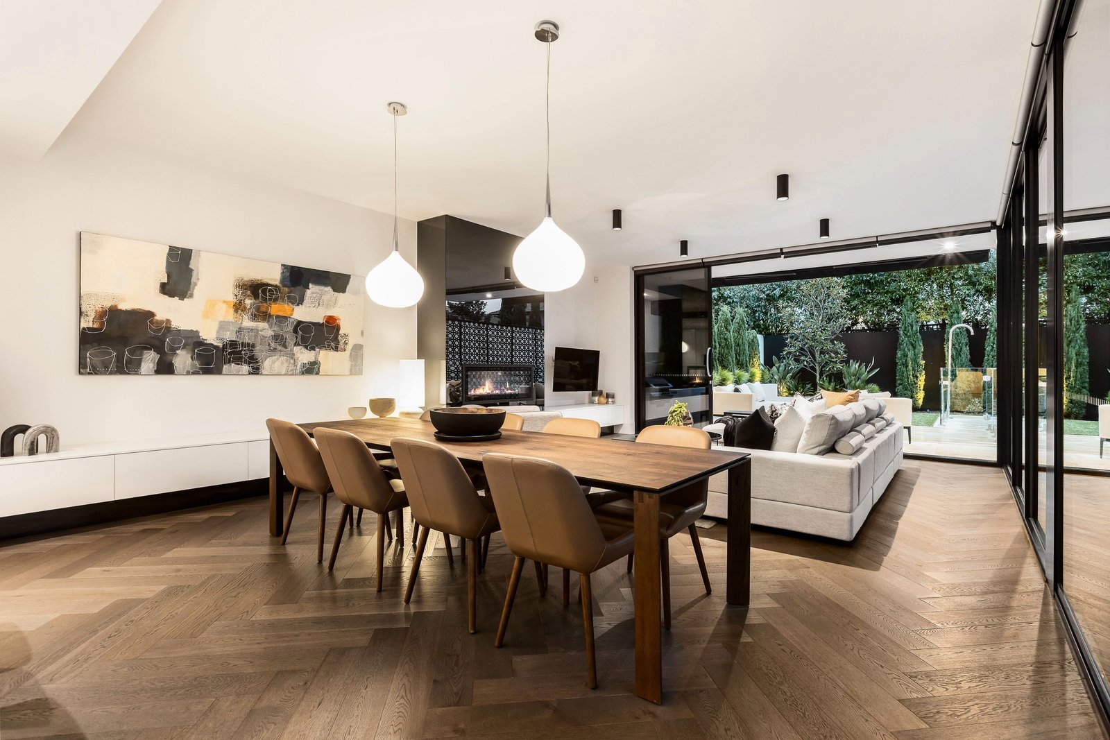 European Oak Herringbone parquetry, smoked mirrored details and full-height glazing imbue an innate sense of style, while individually controlled heating-cooling units, ducted vacuuming, keypad entry and an alarm ensure comfort, privacy and security. This stand-alone home fulfils the brief for easy-living excellence close to Were Street village, the station, schools, Church Street and the beach.