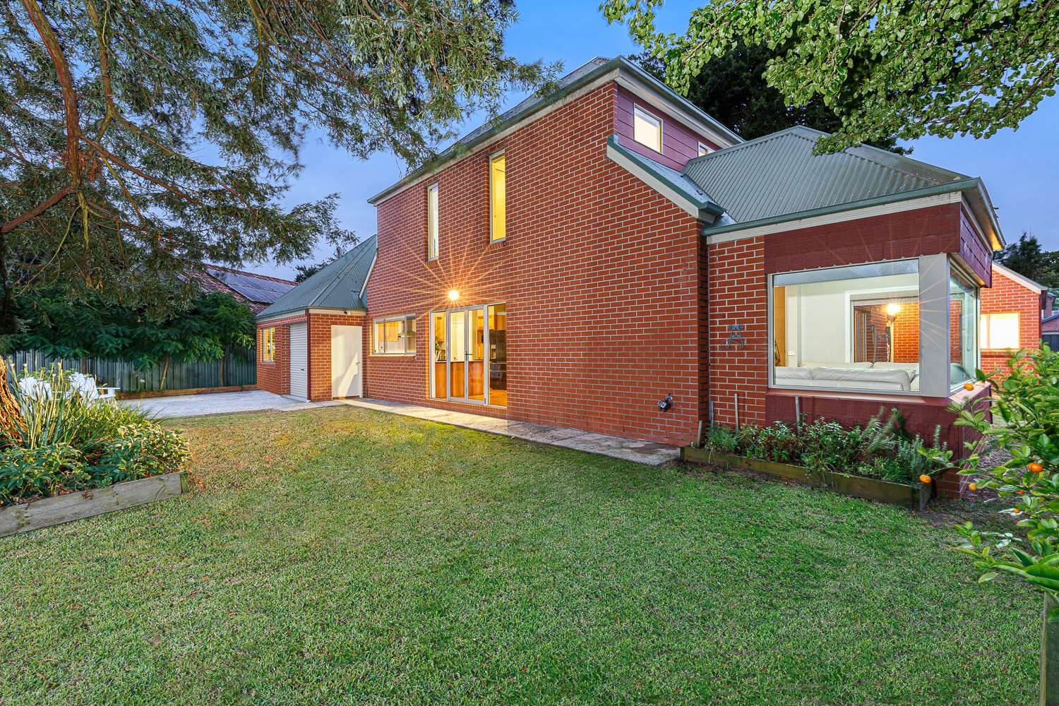 - The backyard is generously sized boasting magnificent mature trees and lawn.
