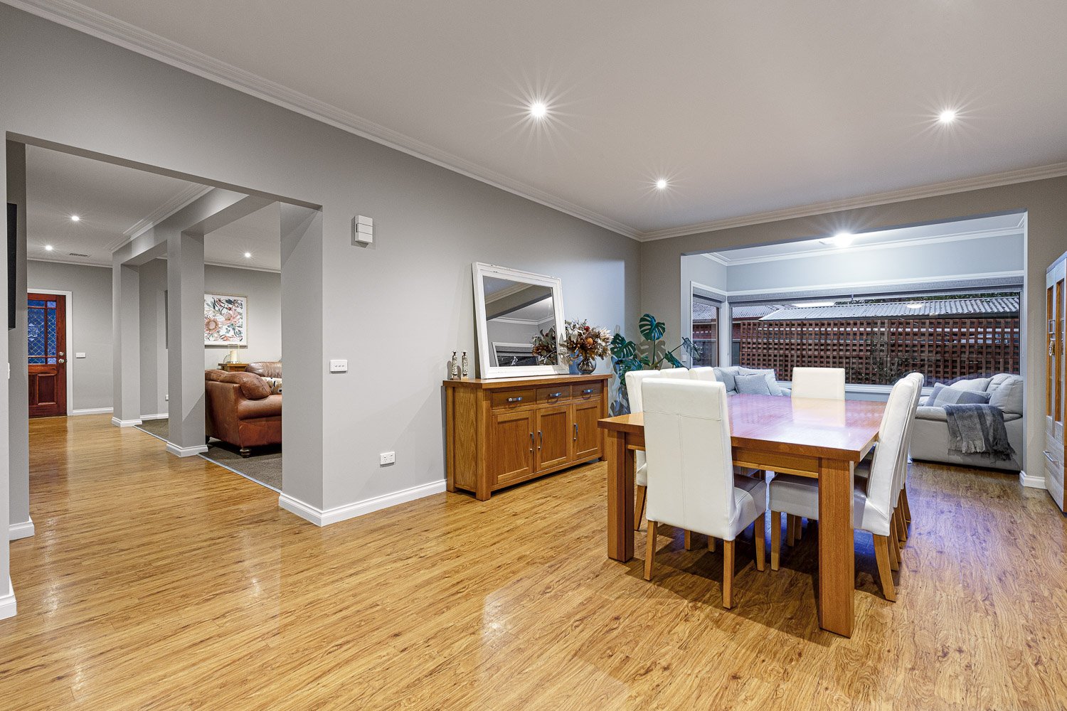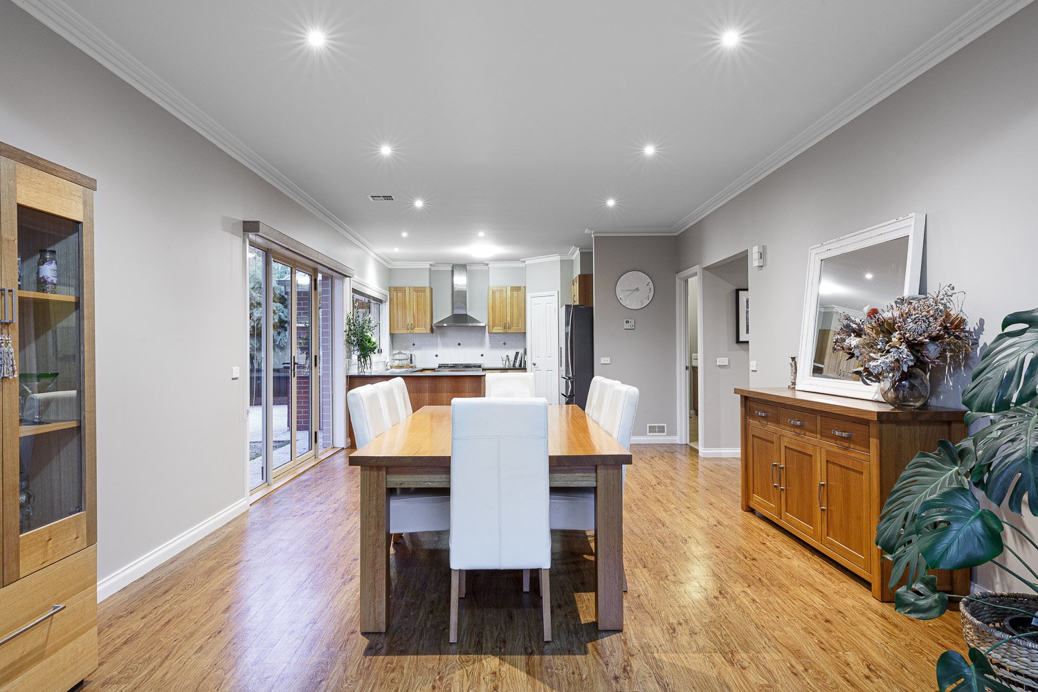 - The sun filled open plan living area features living and dining that opens out to an alfresco area perfect for entertaining family and friends.