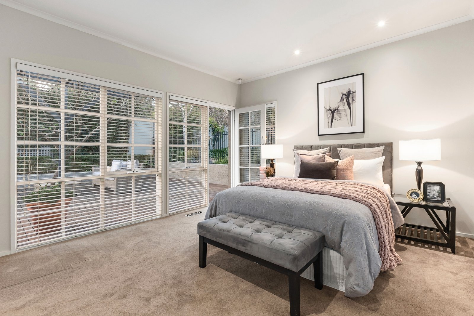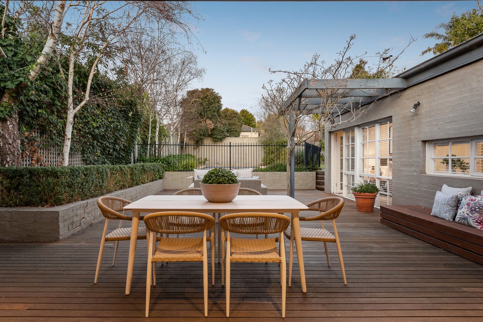 Zoned 4-bedroom, 3.5-bathroom accommodation includes a gorgeous front bedroom with a high decorative ceiling, built-in robes and desk, and plantation shutters looking out the front garden. A second bedroom and an updated, stone vanity bathroom also reside at the front of the home. The main-suite is privately positioned to the rear and flaunts a dual vanity en suite, walk-in robe and French doors to a Wisteria-covered pergola. There is also a fully-fitted study overlooking the deck as well as a third robed bedroom, tiled bathroom and stone-bench laundry with WC.