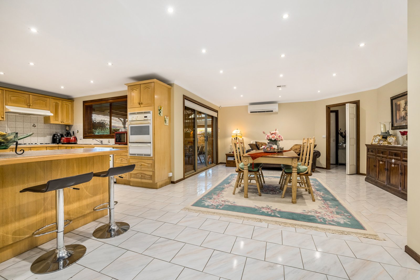 Ready to welcome a big busy family with a warmly timber-floored sitting-room, and an expansive family zone beyond a timeless Tasmanian Oak kitchen, this spacious home has even more living outdoors in an entertaining al fresco pavilion in high-hedged gardens! Styled with a fitted walk-in robe and an elegant ensuite for the quiet master-suite, this centrally heated home is appointed with reverse-cycle air-conditioning, an alarm, and a 12-panel solar-energy system with a high-capacity inverter.