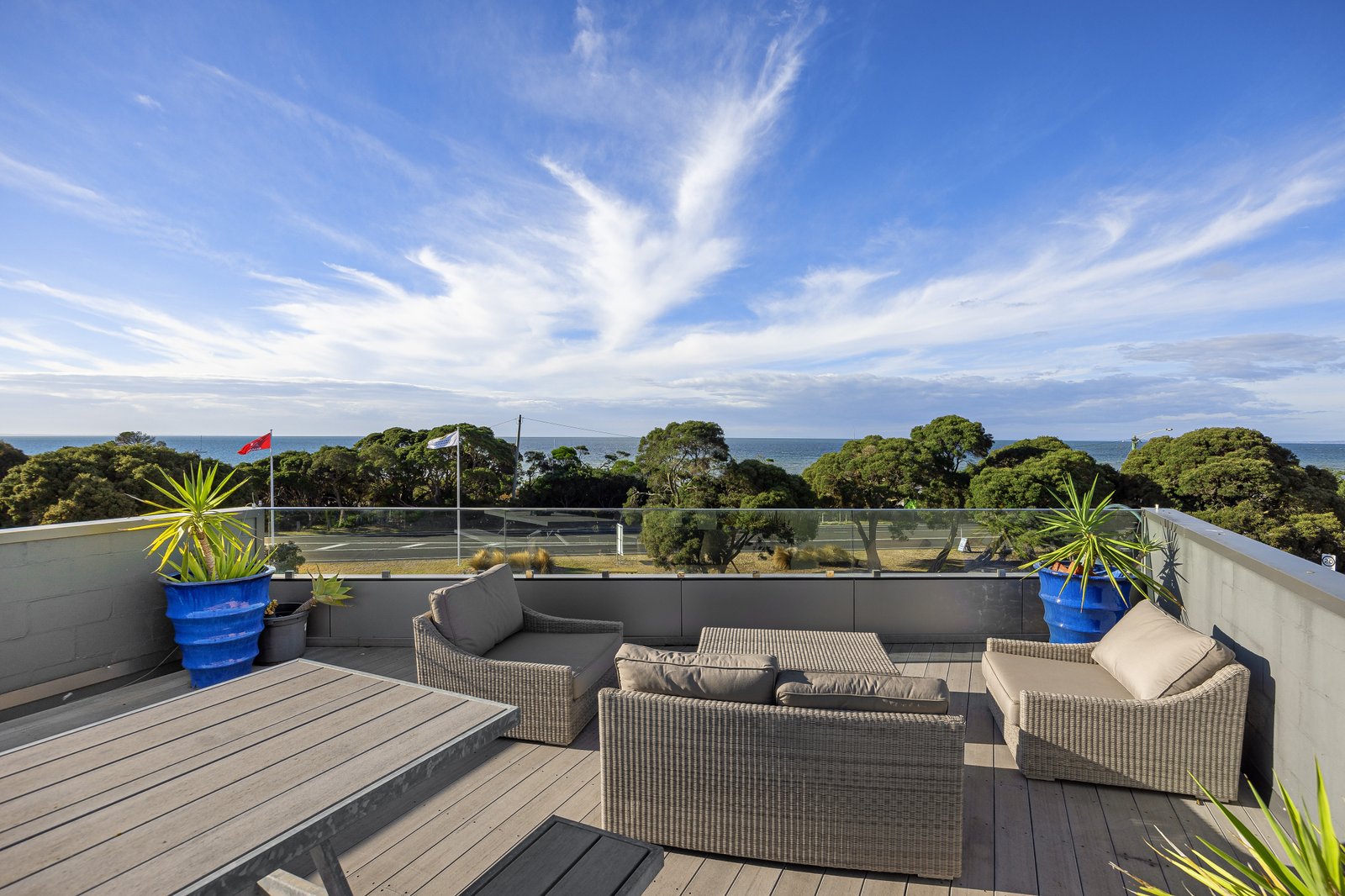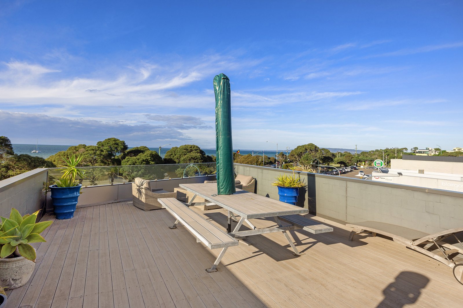 This fully furnished 3 bedroom, 2 bathroom modern apartment with roof top terrance is located directly across the road from the Blairgowrie foreshore and above the shops in Blairgowrie Village.