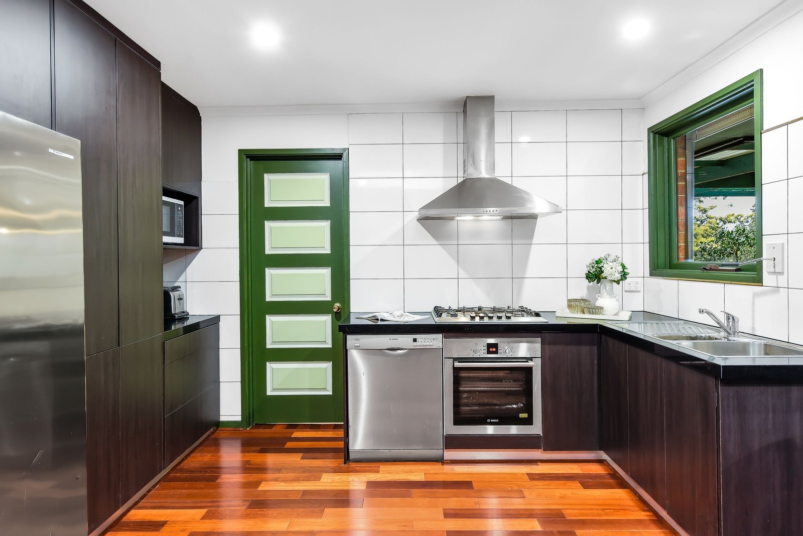 Inside, the residence radiates warmth and comfort. Gas floor heating, reverse-cycle air conditioning in the main family areas, and polished timber hardwood floors ensure year-round comfort. Modern LED down lights and painted green timber architraves add a touch of sophistication.