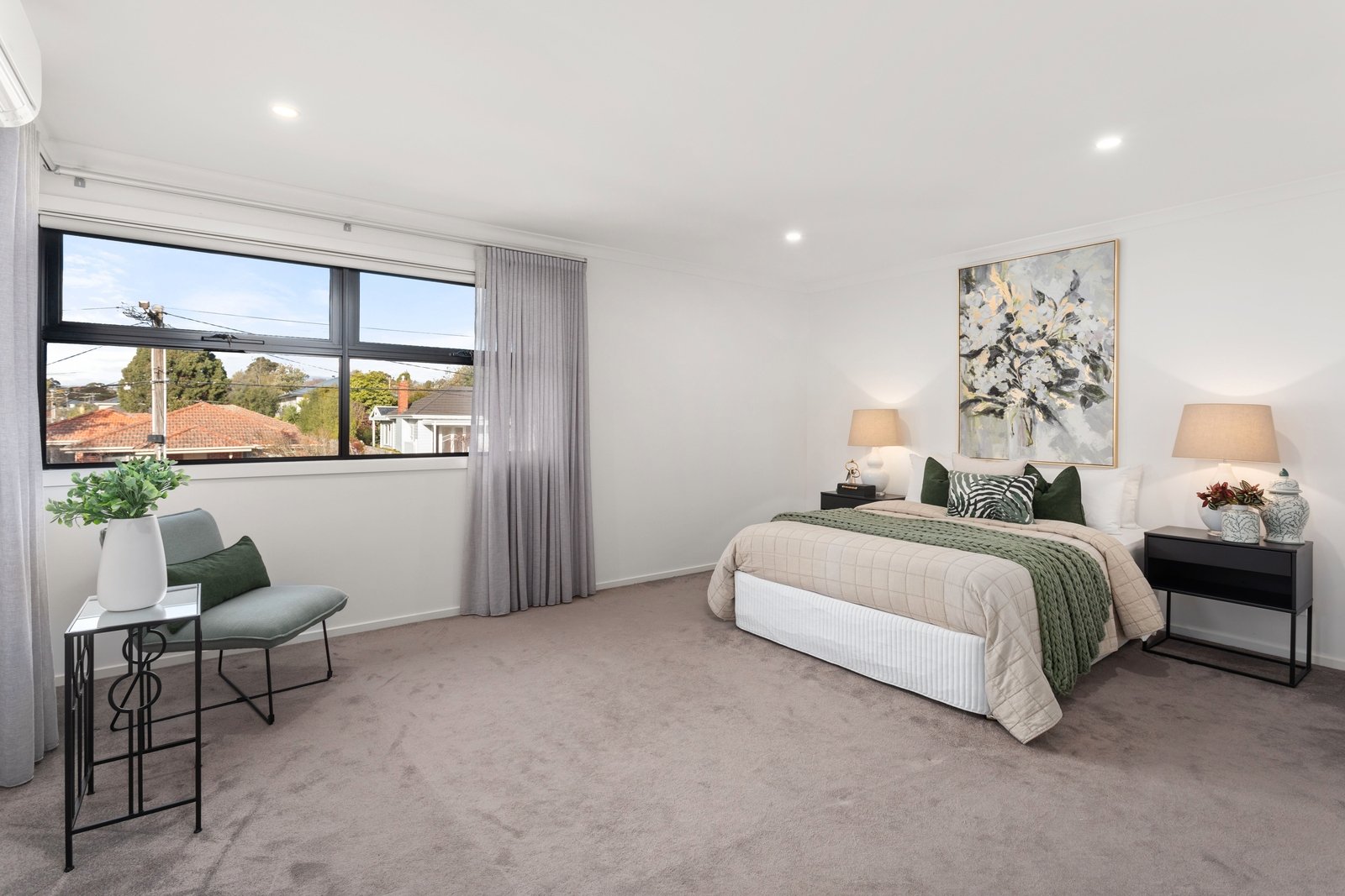 Presenting sophisticated modern interiors spanning over two impressive levels, this executive family residence provides an appealing and low-maintenance lifestyle in an exceptionally desirable location. The contemporary design is introduced by timber flooring, high-quality appointments and elegant sheers, creating a luxurious feel throughout. A generously sized open-plan living/dining area integrates effortlessly with a gourmet kitchen, flaunting stone surfaces, walk-in pantry, stainless steel appliances and waterfall island bench. A ground floor guest bedroom and bathroom highlight lifestyle convenience, before ascending to the upper-level where you will find a teenage retreat, striking fully-tiled bathroom and 3 additional robed bedrooms including a stunning main bedroom complete with lavish twin ensuite/WIR. Extra indulgences include split system heating/AC, covered entertaining deck, shed and double garage. Positioned in the MWSC catchment, walking distance to Mount Scopus, Presbyterian Ladies' College, Kingswood College, Deakin University, Burwood Brickworks Shopping Centre and the city-bound tram.
