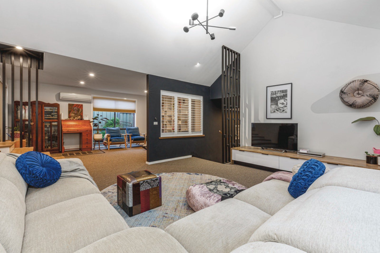 Gas central heating and split systems have been thoughtfully integrated to ensure optimal climate control throughout the year, while the addition of motorised external sunscreen awnings provides a great way to regulate sunlight in the home.