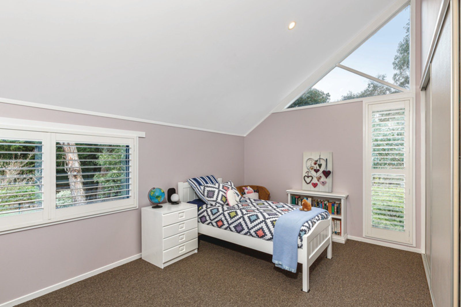 With a total of five generously sized bedrooms, this home offers ample space for a growing family or those who love to host guests. The king-size master bedroom is a true retreat, featuring a walk-in robe and a full ensuite. Three bedrooms are located upstairs, each showcasing unique pitched roof lines that add a touch of character to the space. Downstairs, two additional bedrooms provide flexibility for various uses, and a retreat or study nook adds to the home's functional layout.