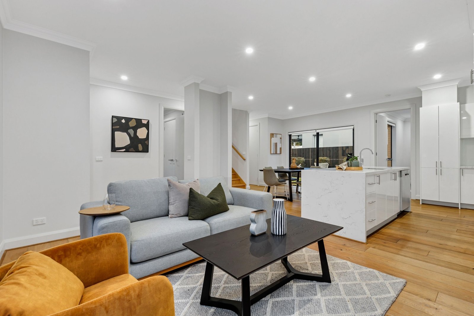 A streamlined approach to design, this alluring residence exudes space, light and luxury, contributing to a life of modern indulgence. Undeniable contemporary excellence is exemplified in the open-plan layout, complemented by a sleek stone/Bosch appointed kitchen and separate living room, versatile as a 5th bedroom. Setting the benchmark for family flexibility is ground and upper-level main bedrooms each with a luxe ensuite/BIR, 3 further robed bedrooms and stunning fully-tiled bathroom. Discover the epitome of desirable low-maintenance living complete with powder room, timber floors, split system heating/AC, ample storage, private landscaped courtyard, single garage and off street car space. Located in the Hughesdale Primary School & Oakleigh South College zones, a walk to Temperance Society café on Kangaroo Road, Argyle Reserve and moments to local shops, Chadstone, Poath Road cafes, train and Oakleigh Central.