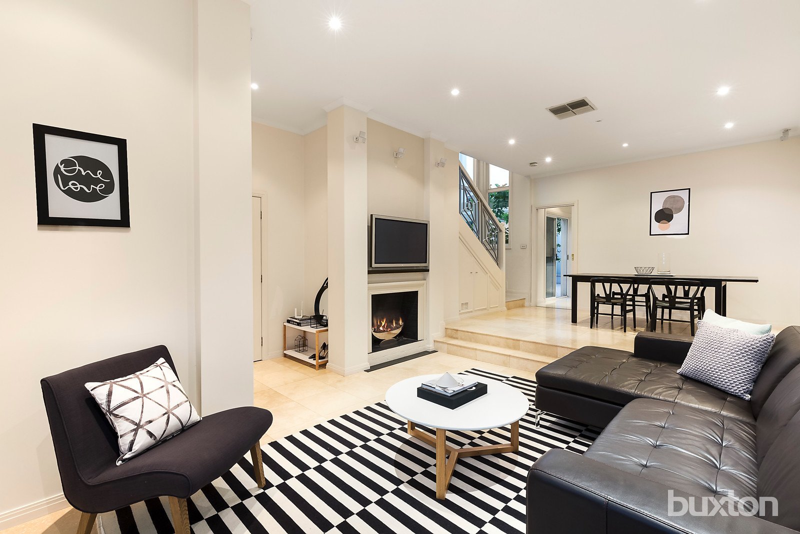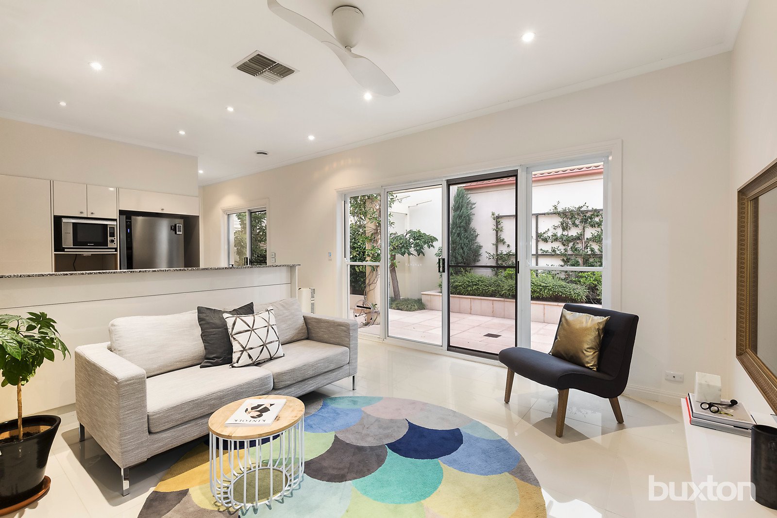 Distinguished by its sun-bathed floor plan and inviting private courtyard, this contemporary two-level house delivers excellent low maintenance appeal. A series of well-zoned open plan spaces include inviting living and dining domain with gas fire and a rear family room opening to the paved entertaining area and courtyard. A well-appointed kitchen boasting granite benchtops and stainless steel appliances. Upstairs, the main bedroom reveals a balcony with park views and a polished ensuite, two further bedrooms with built in robes and a stylish family bathroom. Additional appointments include monitored alarm, ducted heating/cooling, keyless entry, separate laundry with 3rd WC, Water tank and garage with rear roller door to an additional off street parking space. The allure of this home is certified by its prime location, less than a block to the beach, a short walk to Bay Street, the Pier and some of Melbourne's most popular eateries.