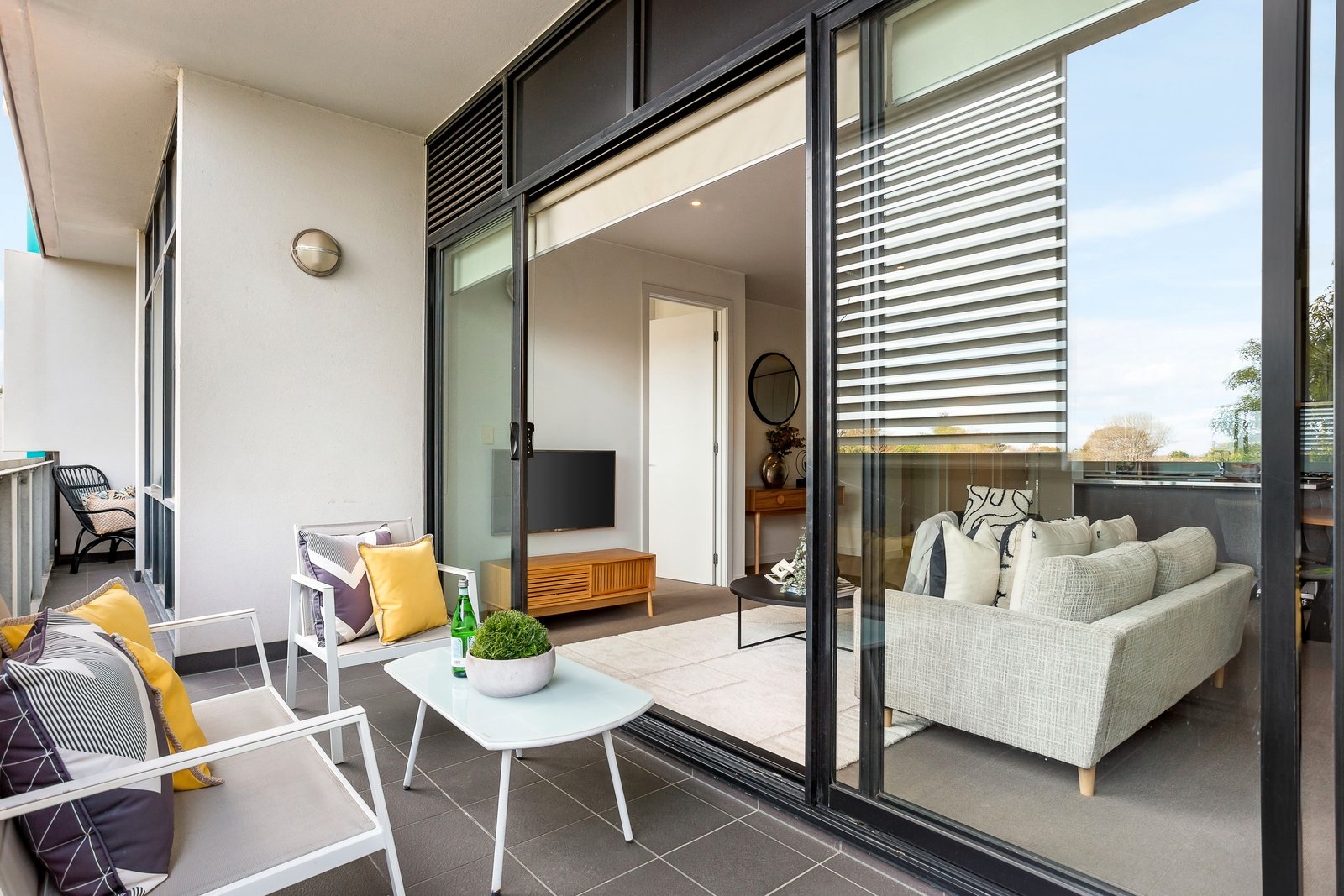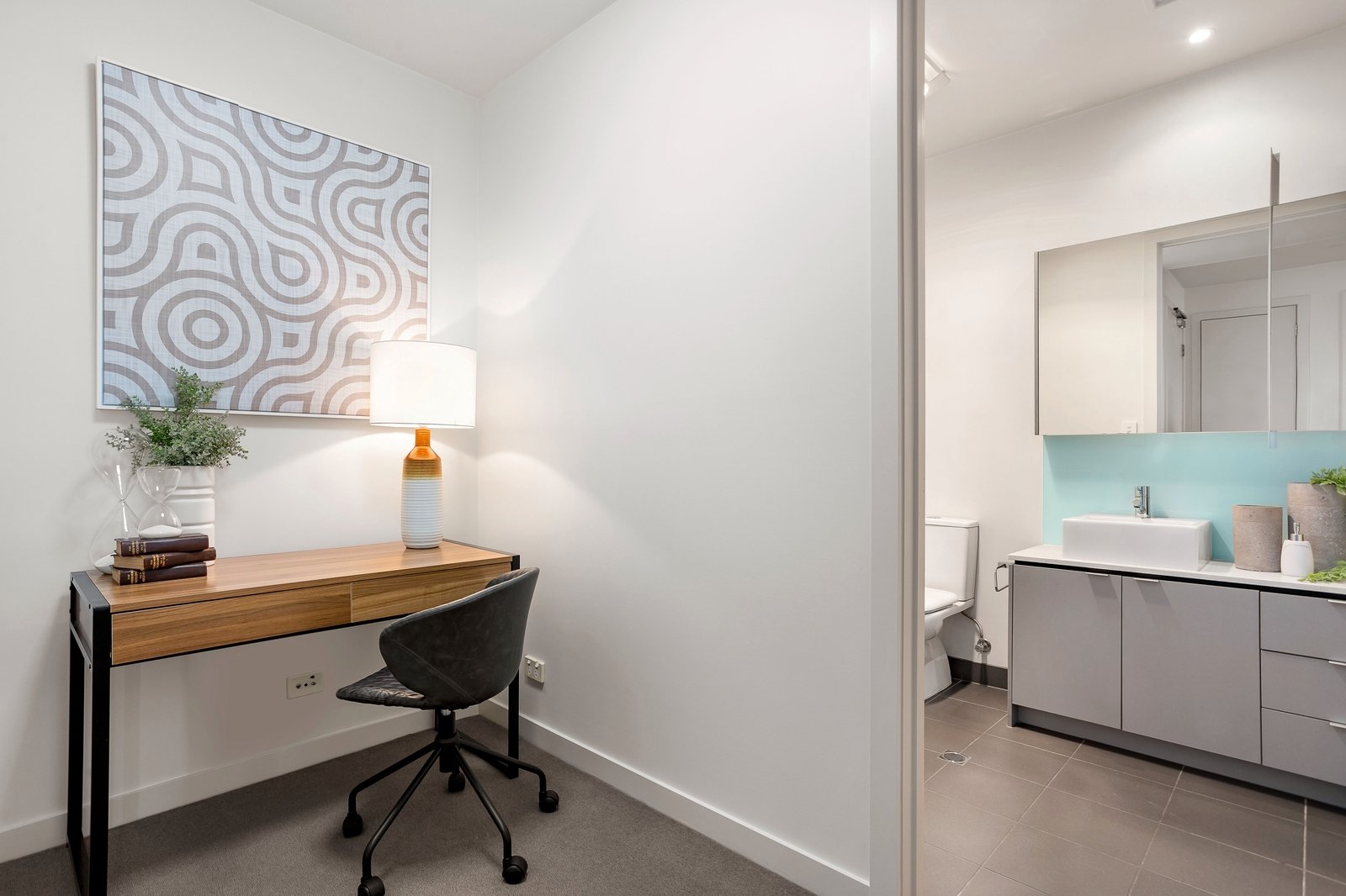 Defined by its generous scale, the apartment showcases two bedrooms, two bathrooms and not one, but two study spaces. This unique 110 sqm layout ensures versatility and comfort, making it an ideal home for own-occupiers and investors alike. Full-height windows fill the apartment with natural light, and frame the leafy urban landscape, offering tantalising glimpses of the nearby bay, to create an ambiance that is serene and inviting.